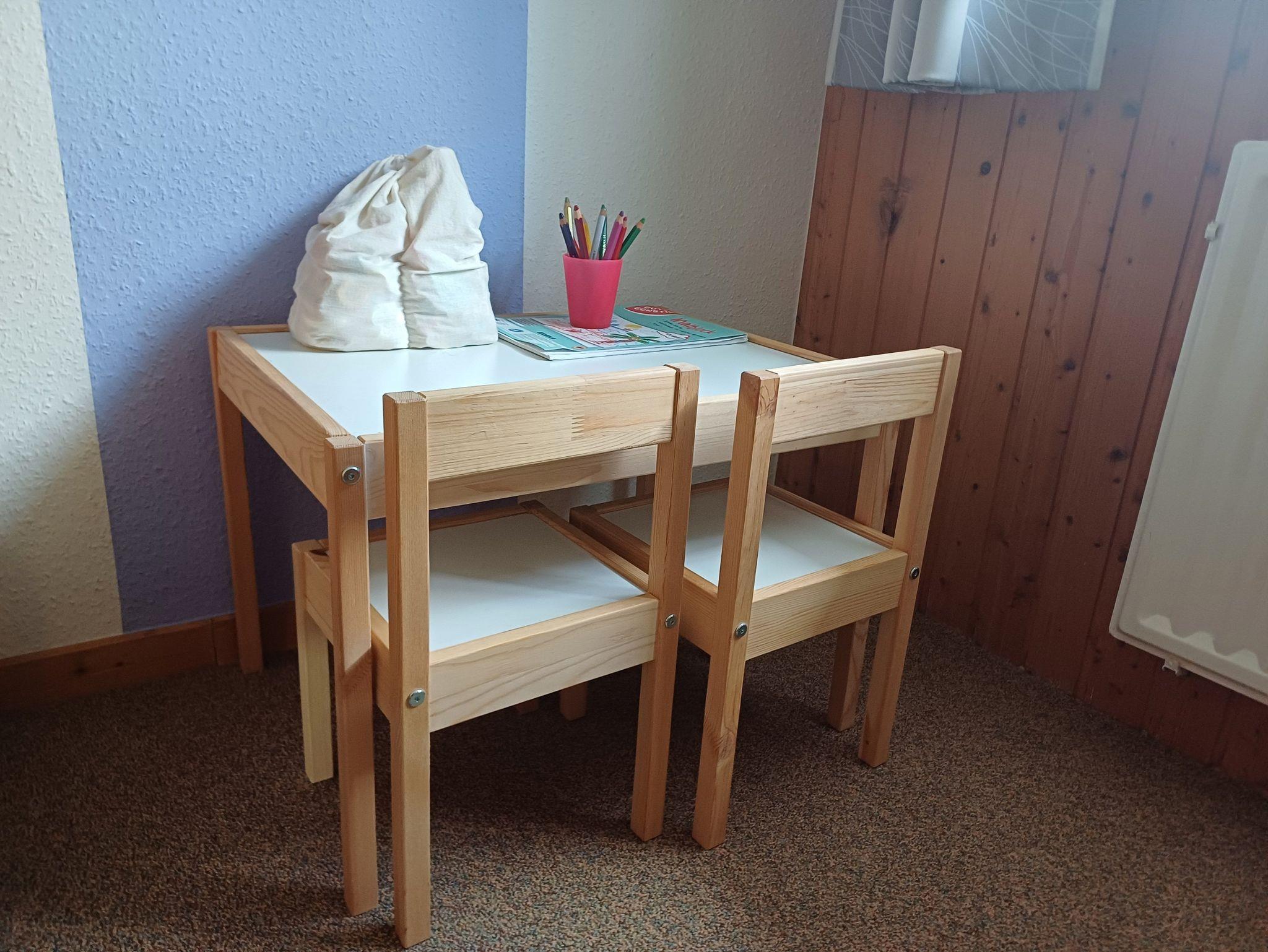 Das Ferienhaus besteht aus einem Wohnzimmer mit gemütlicher Sitzgruppe und einer geräumigen Küche mit Essecke, einem Schlafzimmer mit Doppelbett (1,80 cm), einem Kinderzimmer mit Etagenbett und einem zweiten Kinderzimmer mit einem Einzelbett (auf Wunsch auch einem Kinderbettchen), einem Duschbad und dem Flur. Zum Ferienhaus gehört eine sonnige möblierte Terrasse mit Grill, Strandkorb und einer großen Rasenfläche. Diverse Spielgeräte sind auf der Rasenfläche aufgebaut und ermöglichen den Kindern das Spielen und Toben.