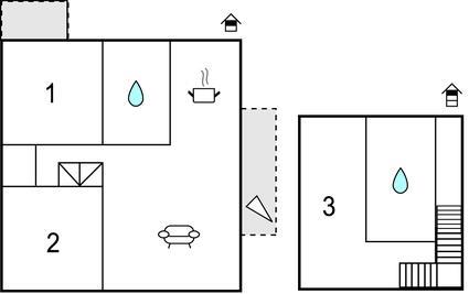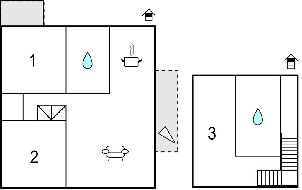 Badezimmer (nr. 2) - WC. Warmes und kaltes Wasser. Dusche