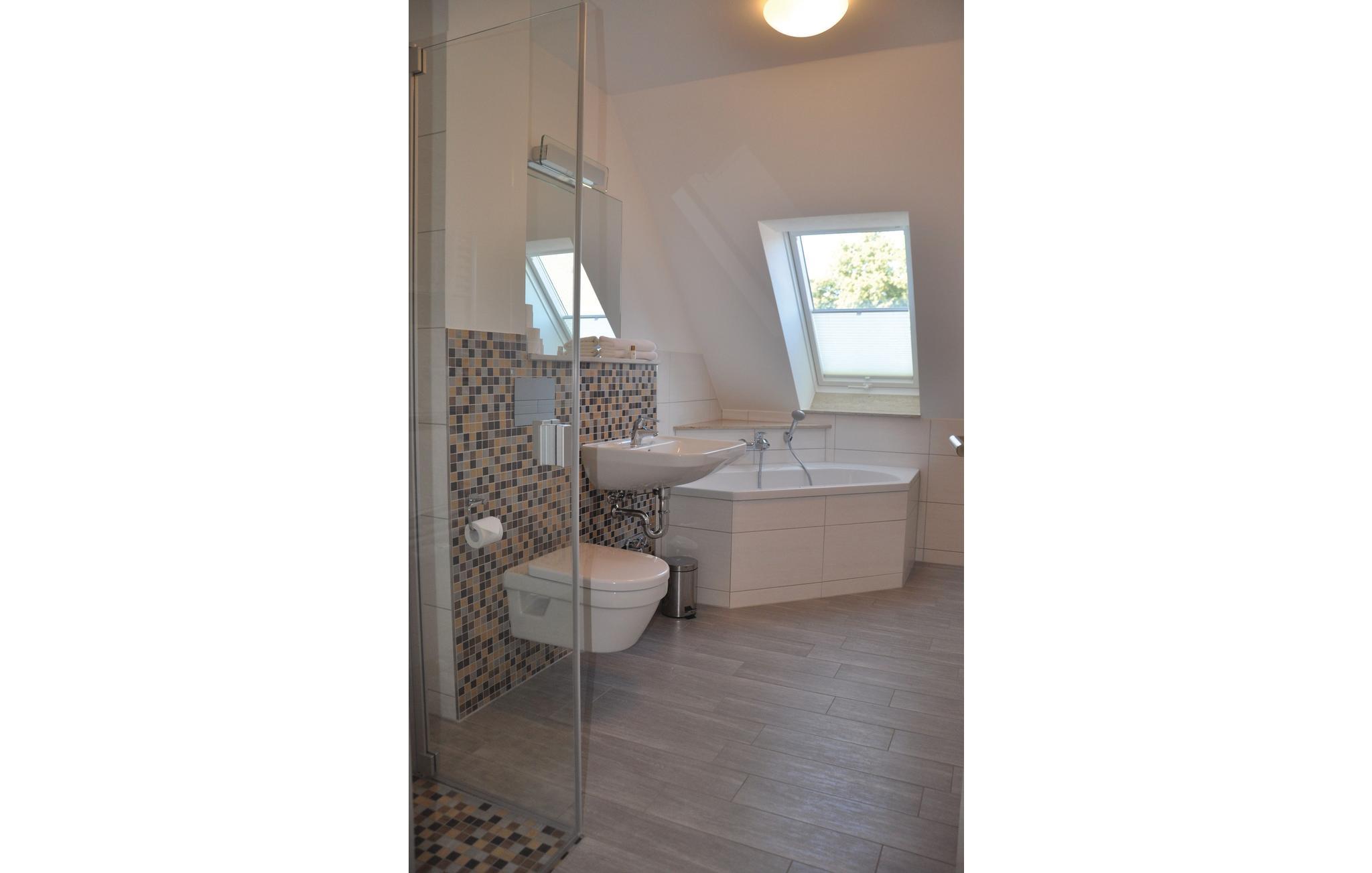 Badezimmer (nr. 1) - WC. Warmes und kaltes Wasser. Dusche und Badewanne