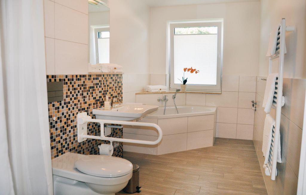 Badezimmer (nr. 1) - WC. Warmes und kaltes Wasser. Dusche und Badewanne
