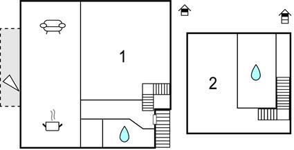 Badezimmer (nr. 2) - WC. Warmes und kaltes Wasser. Dusche