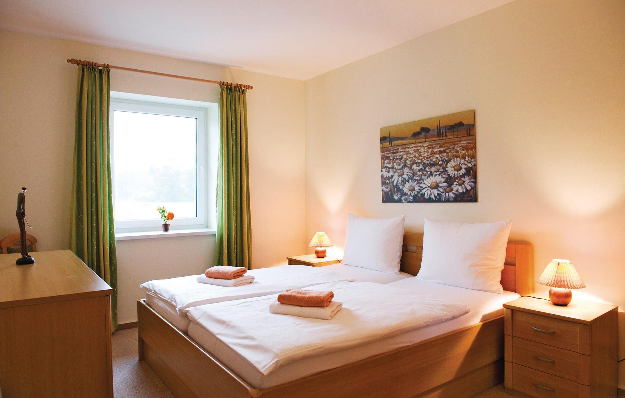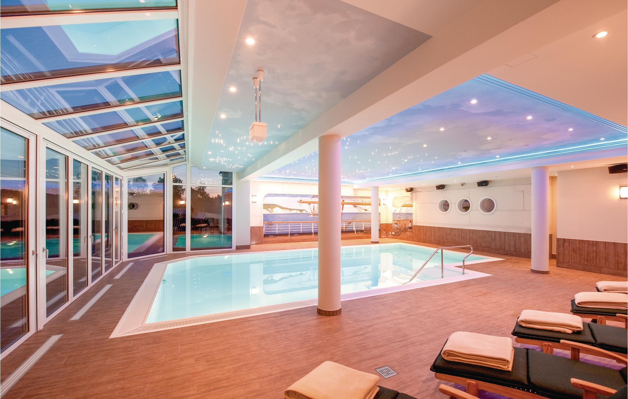 Moderne Ferienwohnung am Golfpark Strelasund mit Sauna, Schwimmbad und Restaurantzugang.