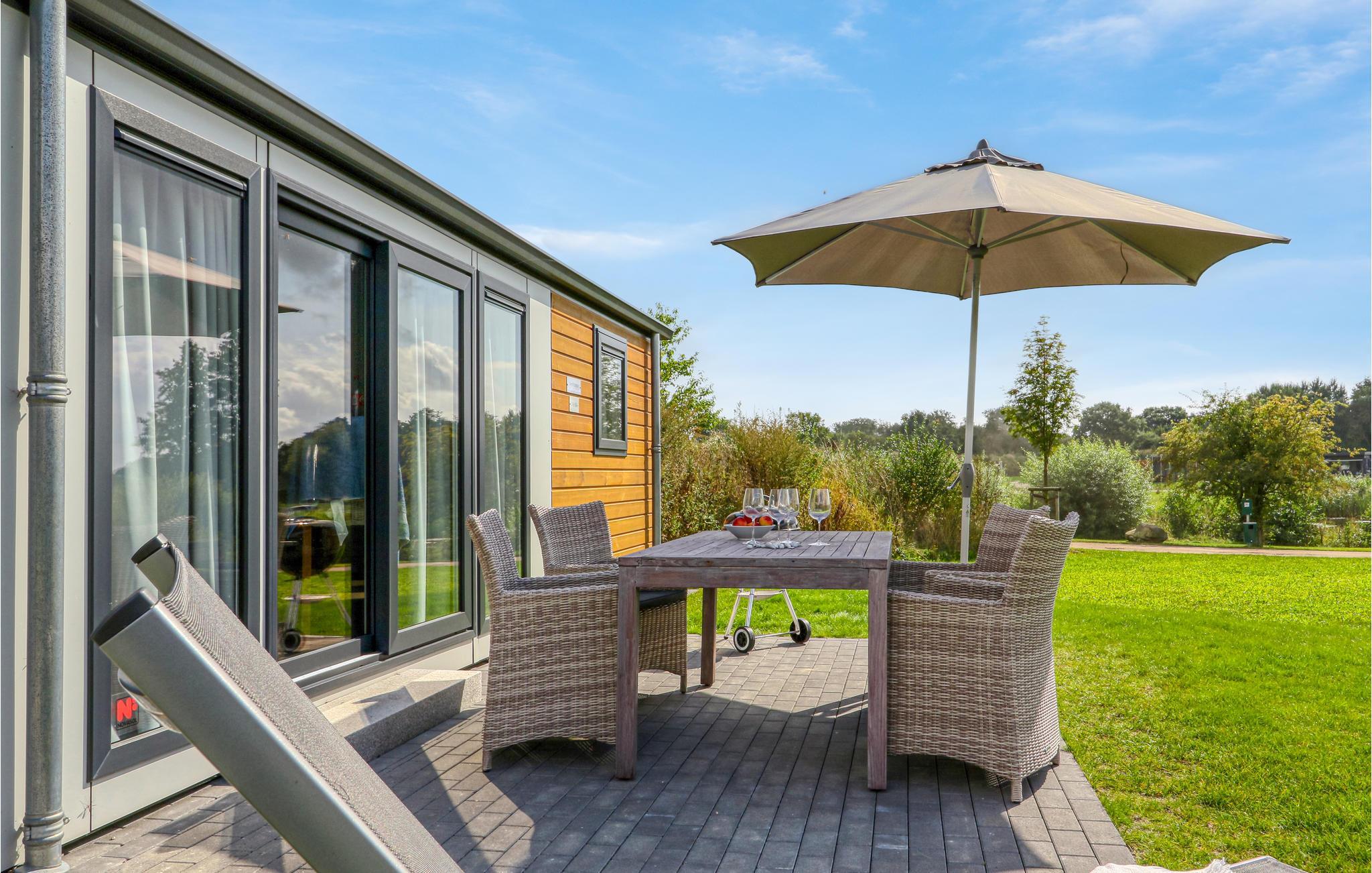 Gemütliches Chalet am Seepark Süsel mit Wasserski-Anlage und direktem Zugang zum Badesee.