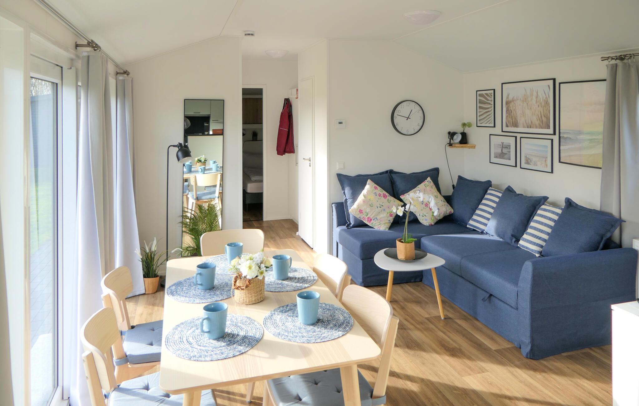 Das komfortabel und gemütlich mit hochwertigen Möbeln eingerichtete Haus verfügt über zwei Schlafzimmer sowie zwei weitere Schlafplätze im Wohnzimmer.