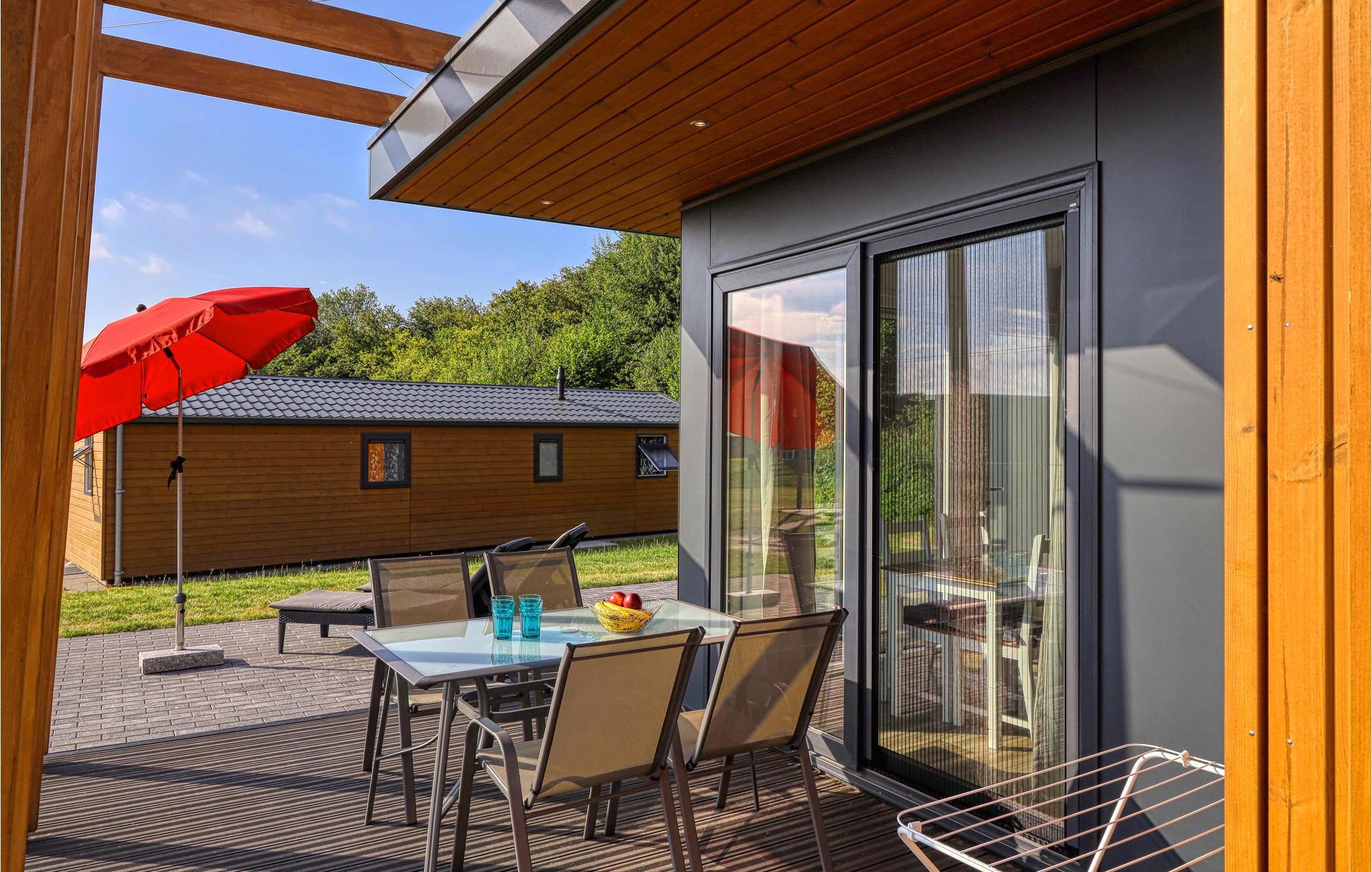 Ihr komfortabel und gemütliches Chalet im modernen Design verfügt über zwei separate Schlafzimmer sowie einen Wohnraum mit Küchenzeile. Geschirrspülmaschine, Kühlschrank und Kaffeemaschine sind hier vorhanden. Zudem sind alle Fenster mit Fliegengittern ausgestattet und das Chalet verfügt über eine Fußbodenheizung.