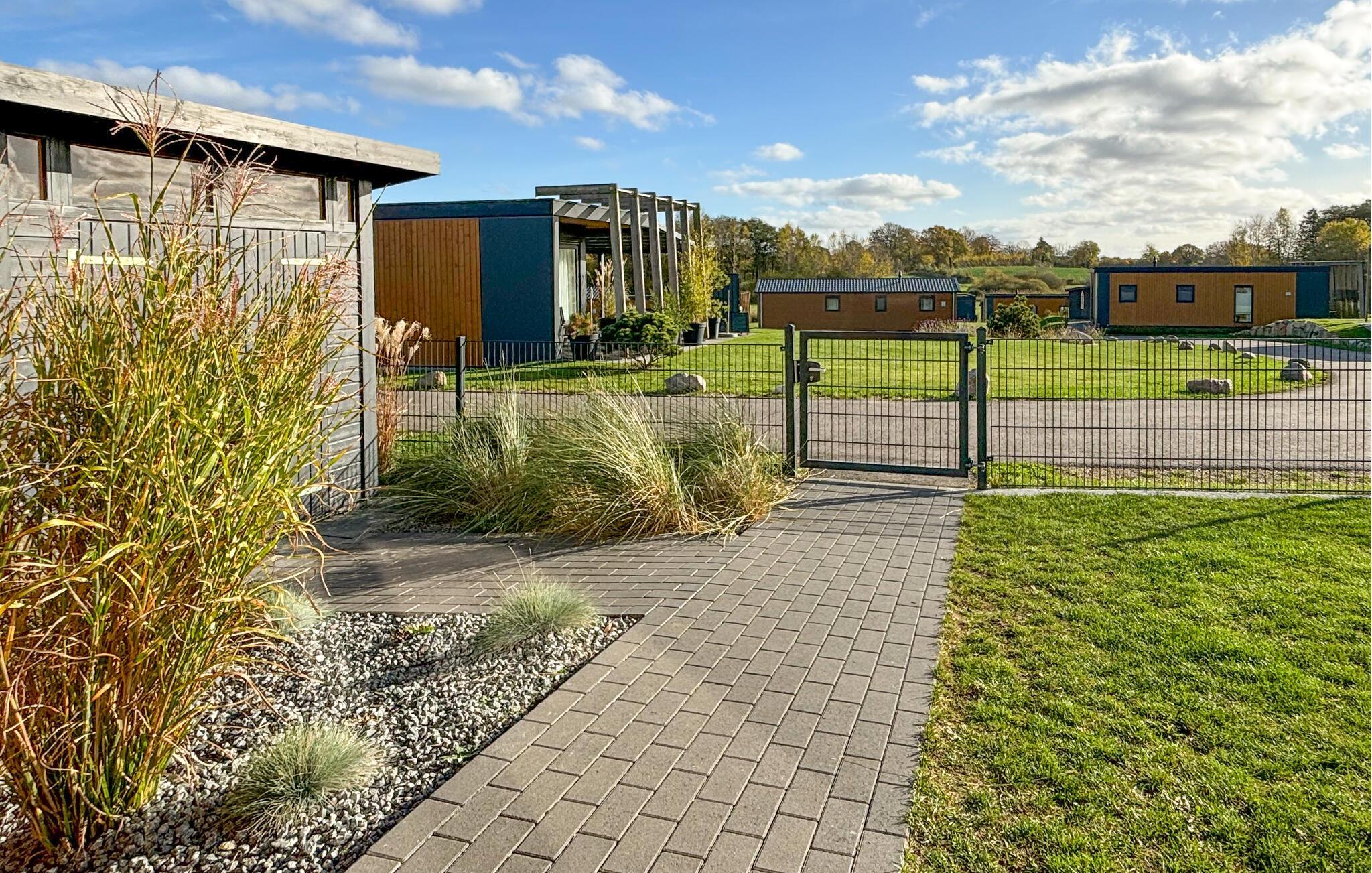 Modernes Chalet "Black Pearl" in Süsel mit Wasserski-Anlage und Nähe zur Ostsee, ideal für Wassersport und Naturfreunde.