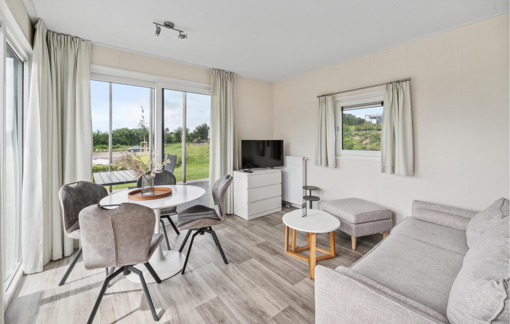Ihr komfortabel und gemütliches Chalet trägt den Namen „Luv“ und verfügt über zwei separate Schlafzimmer sowie einen Wohnraum mit Küchenzeile. Geschirrspülmaschine, Kühlschrank und Kaffeemaschine sind hier vorhanden.