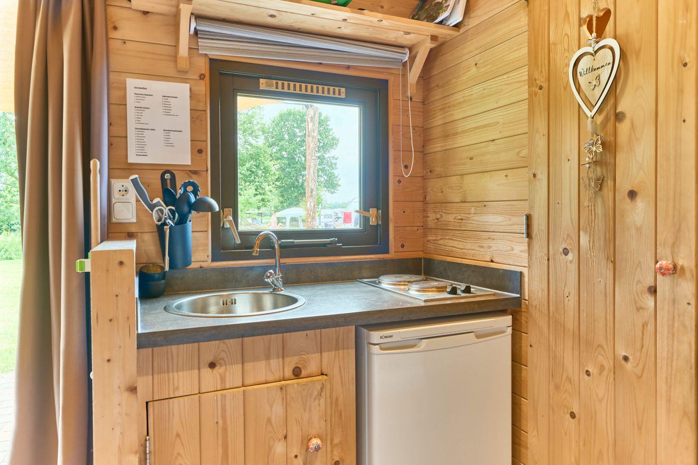 Küchenzeile inklusive 2 Kochplatten und Kühlschrank, perfekt für die Selbstversorgung