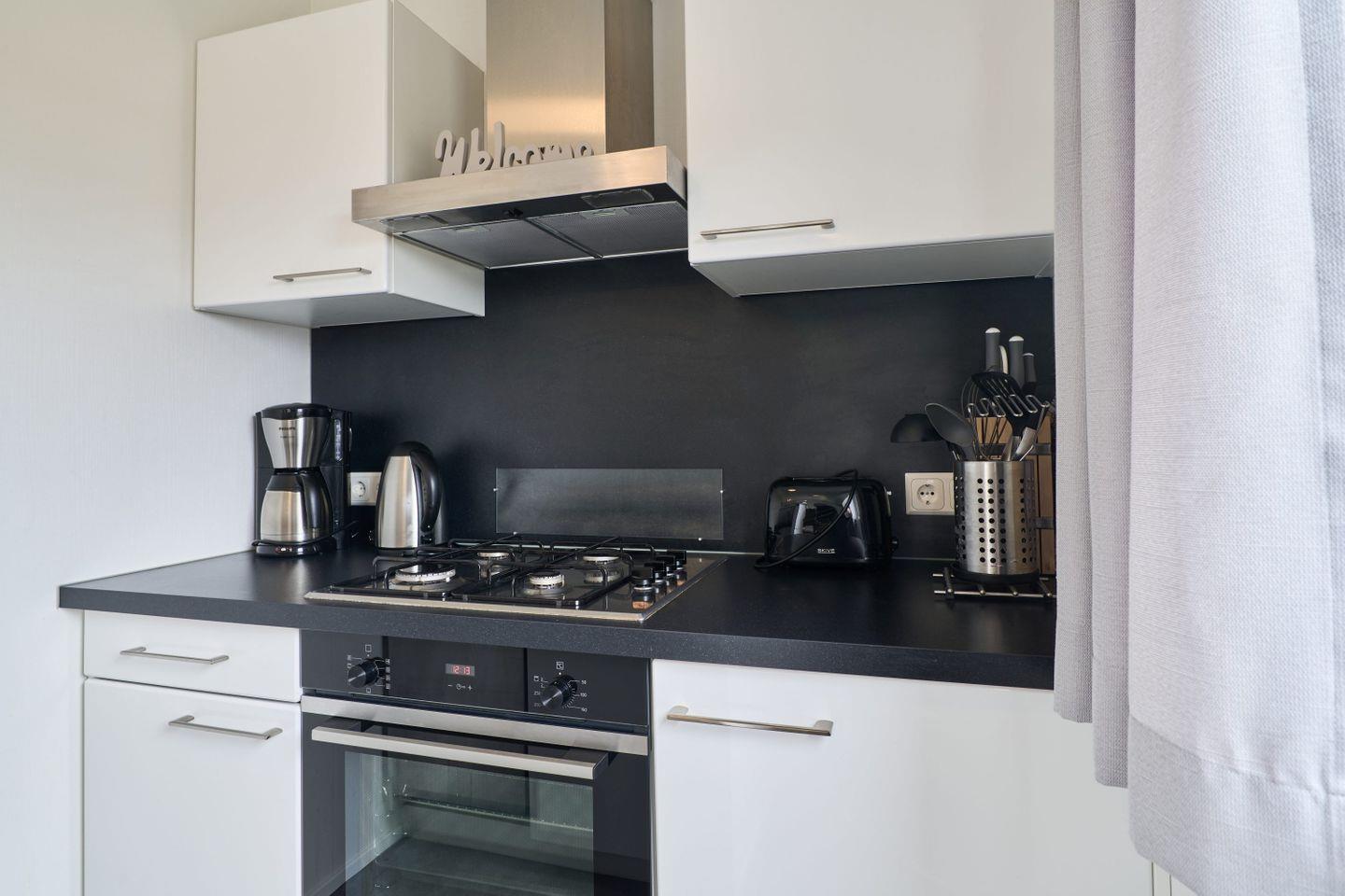 Im Inneren empfängt Sie das Ferienhaus mit einer modernen, offenen Küche, die in den Wohnbereich integriert ist. Diese ist vollständig ausgestattet mit Kaffeemaschine, Wasserkocher, Toaster, Backofen, Herd, Kühlschrank mit Gefrierfach, Geschirrspüler sowie sämtlichem Geschirr und Besteck. Ein Esstisch für gemeinsame Mahlzeiten rundet den Küchenbereich ab. Für Ihren Komfort sind Bettwäsche, Handtücher, Geschirrhandtücher und ein Staubsauger vor Ort vorhanden.