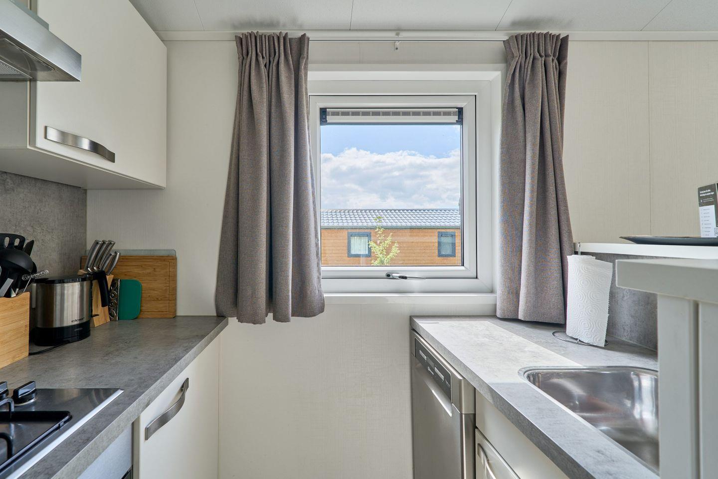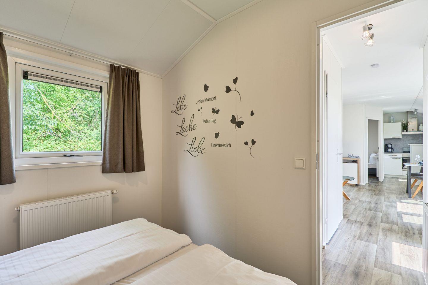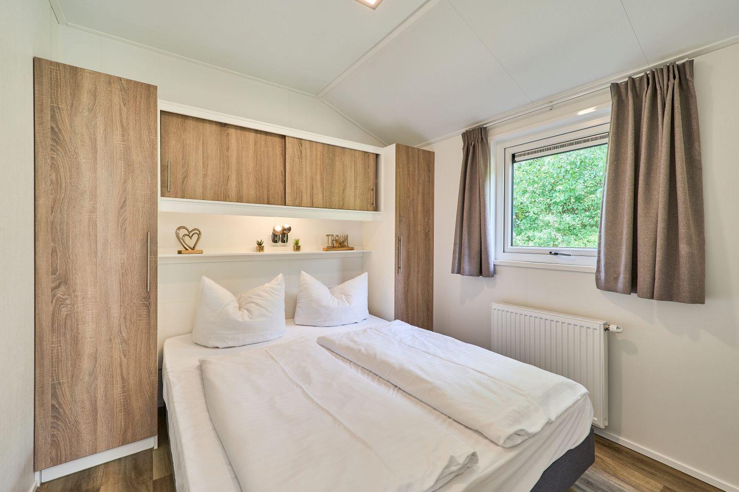 Freistehende Lodge im Seepark Süsel mit moderner Ausstattung und vielfältigen Freizeitmöglichkeiten am Wasser.