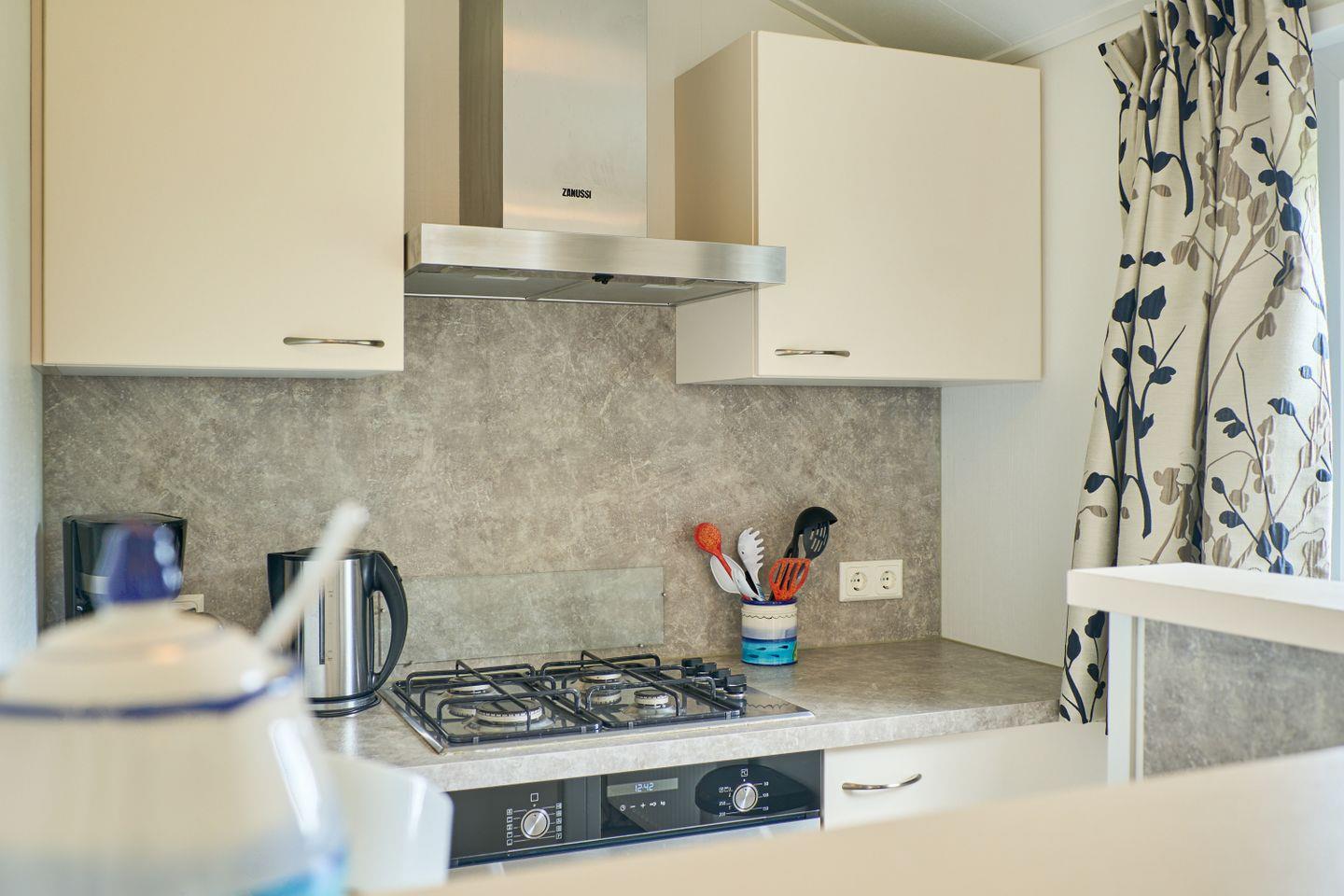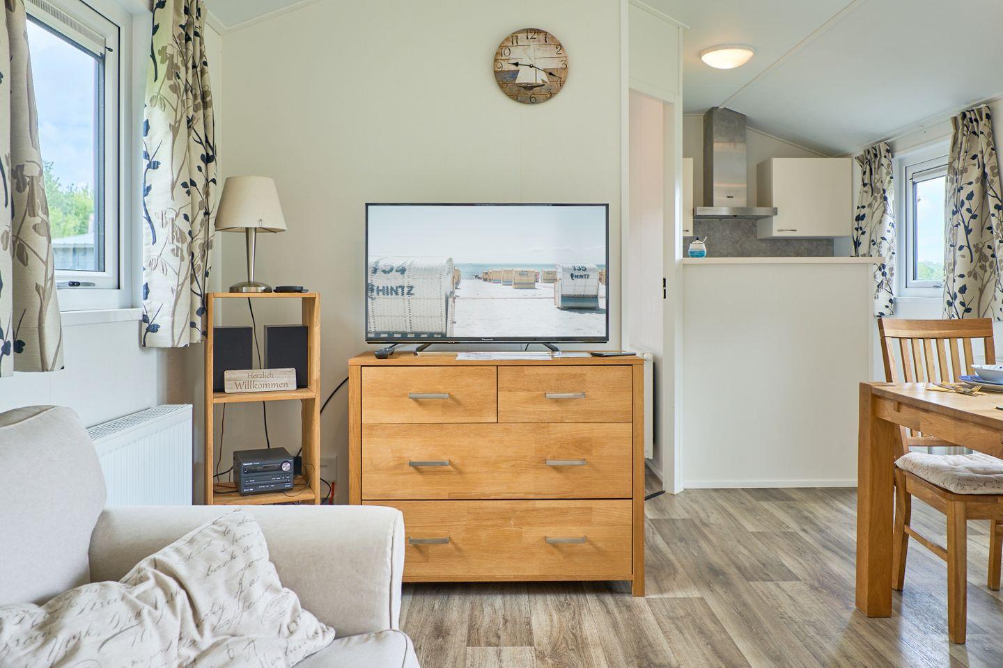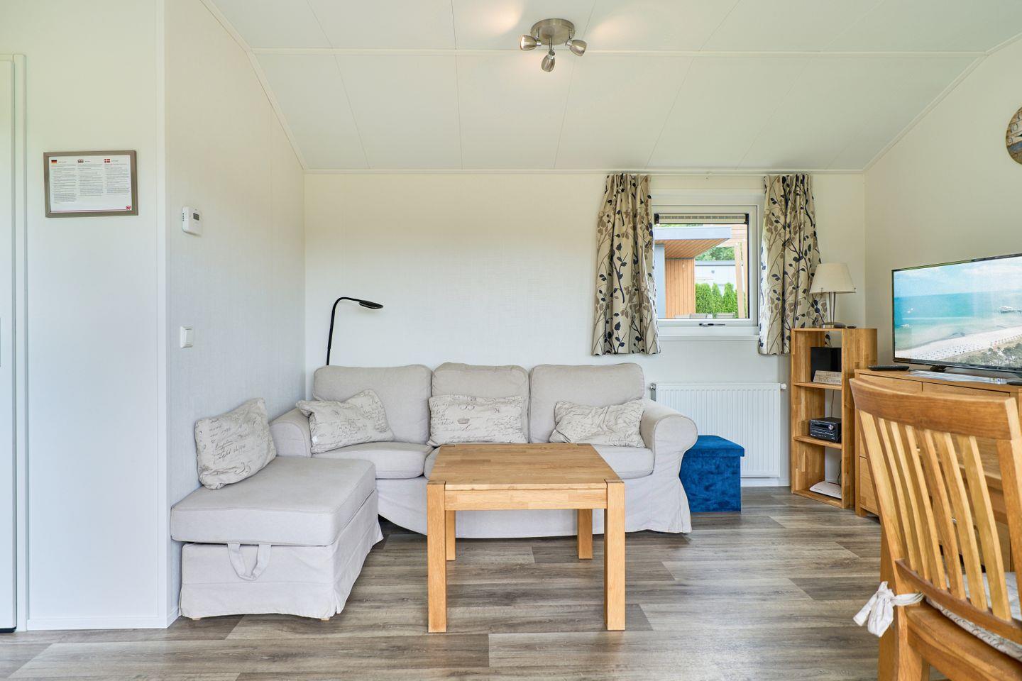 Das gut geschnittene Ferienhaus erstreckt sich über 40 Quadratmeter Wohnfläche und stellt Ihnen insgesamt drei Zimmer zur Verfügung. Es umfasst zwei separate Schlafzimmer mit insgesamt vier Schlafmöglichkeiten und eignet sich optimal für Paare oder kleine Familien. Im offenen Wohnbereich lädt ein gemütliches Sofa zum Entspannen ein, während der Essbereich ausreichend Platz für gemeinsame Mahlzeiten bietet. Herzstück des Hauses ist die offen zum Wohnzimmer gestaltete Küche, die mit modernen Geräten wie Herd, Backofen, Kühlschrank mit Gefrierfach, Spülmaschine, Wasserkocher, Kaffeemaschine und Toaster sowie sämtlichen Küchenutensilien, Geschirr und Besteck ausgestattet ist – so lassen sich unkompliziert alle kulinarischen Wünsche erfüllen.