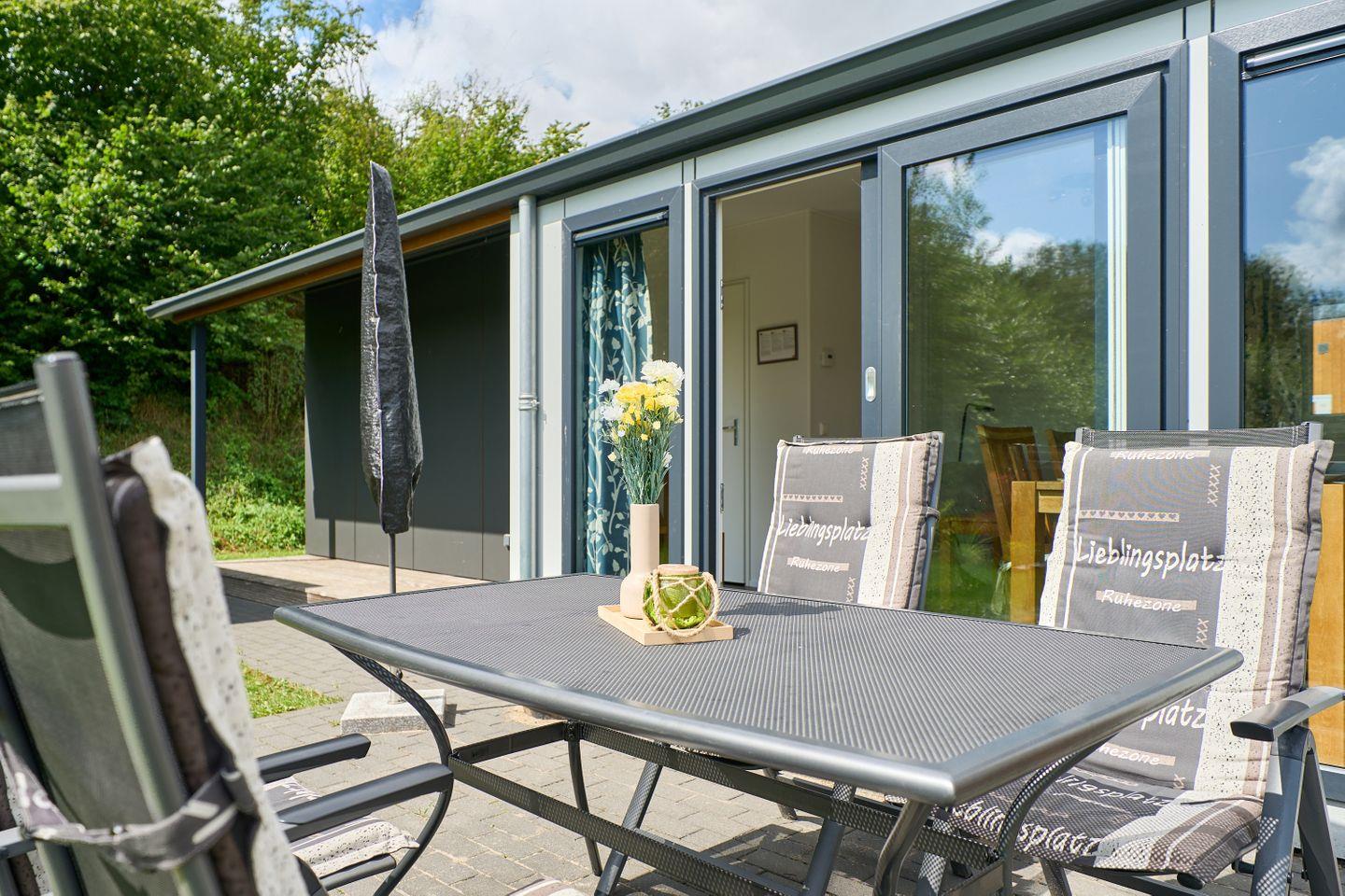Im Außenbereich erwartet Sie eine gepflasterte Terrasse mit Gartenmöbeln sowie eine Liegewiese, welche gemeinsam zum Verweilen im Freien, Sonnenbaden oder gemeinsamen Frühstücken einlädt. Ein kostenfreier Parkplatz, auch für Elektroautos dank Ladestation, befindet sich direkt am Ferienhaus.