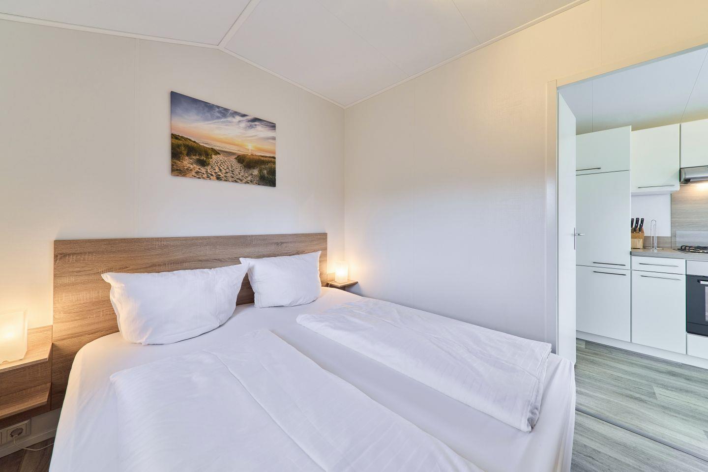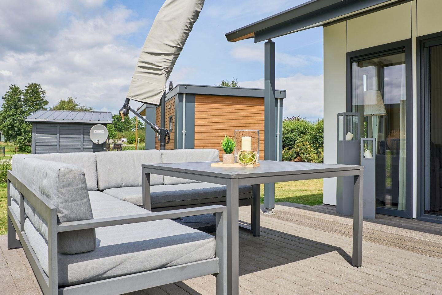 Das freistehende Ferienhaus bietet auf 40 m² einen durchdachten Grundriss für bis zu vier Personen. Zwei separate Schlafzimmer gewährleisten Privatsphäre und Komfort sowohl für Eltern mit Kindern als auch für kleine Gruppen. Der offene Wohnbereich verbindet Wohnzimmer und Küche harmonisch und schafft ein helles, freundliches Ambiente. Die moderne Küche ist voll ausgestattet mit Ceranherd, Backofen, Spülmaschine, Kühlschrank mit Gefrierfach, Kaffeemaschine, Wasserkocher, Toaster sowie sämtlichen Kochutensilien, Geschirr und Besteck. Ihre Mahlzeiten können Sie am Esstisch im gemütlichen Wohnbereich oder auf der eigenen Terrasse genießen. Die Terrasse ist mit Gartenmöbeln möbliert und lädt zum Entspannen im Grünen ein.