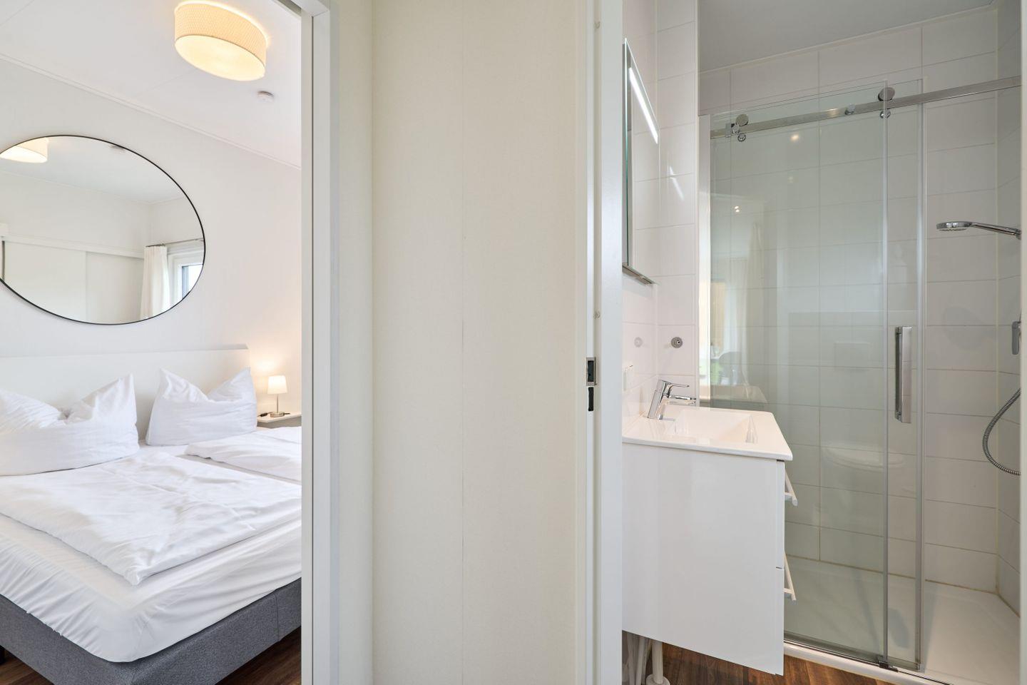 Das Wohnzimmer überzeugt mit einer komfortablen Sofaecke und einem Fernseher; selbstverständlich steht Ihnen kostenfreies WLAN zur Verfügung. Für Ihren Aufenthalt sind Bettwäsche und Handtücher bereits im Mietpreis enthalten. Das Badezimmer ist mit Dusche, Waschbecken, WC und Spiegel ausgestattet und bietet Sichtschutz an allen Fenstern – auch für Allergiker ein angenehmer Vorteil. Für Familien und Gäste mit Kindern stehen ein Spielplatz sowie zahlreiche Freizeit- und Sportmöglichkeiten, etwa Schwimmen, Joggen, Radfahren, Wandern und verschiedene Wassersportarten, zur Verfügung.