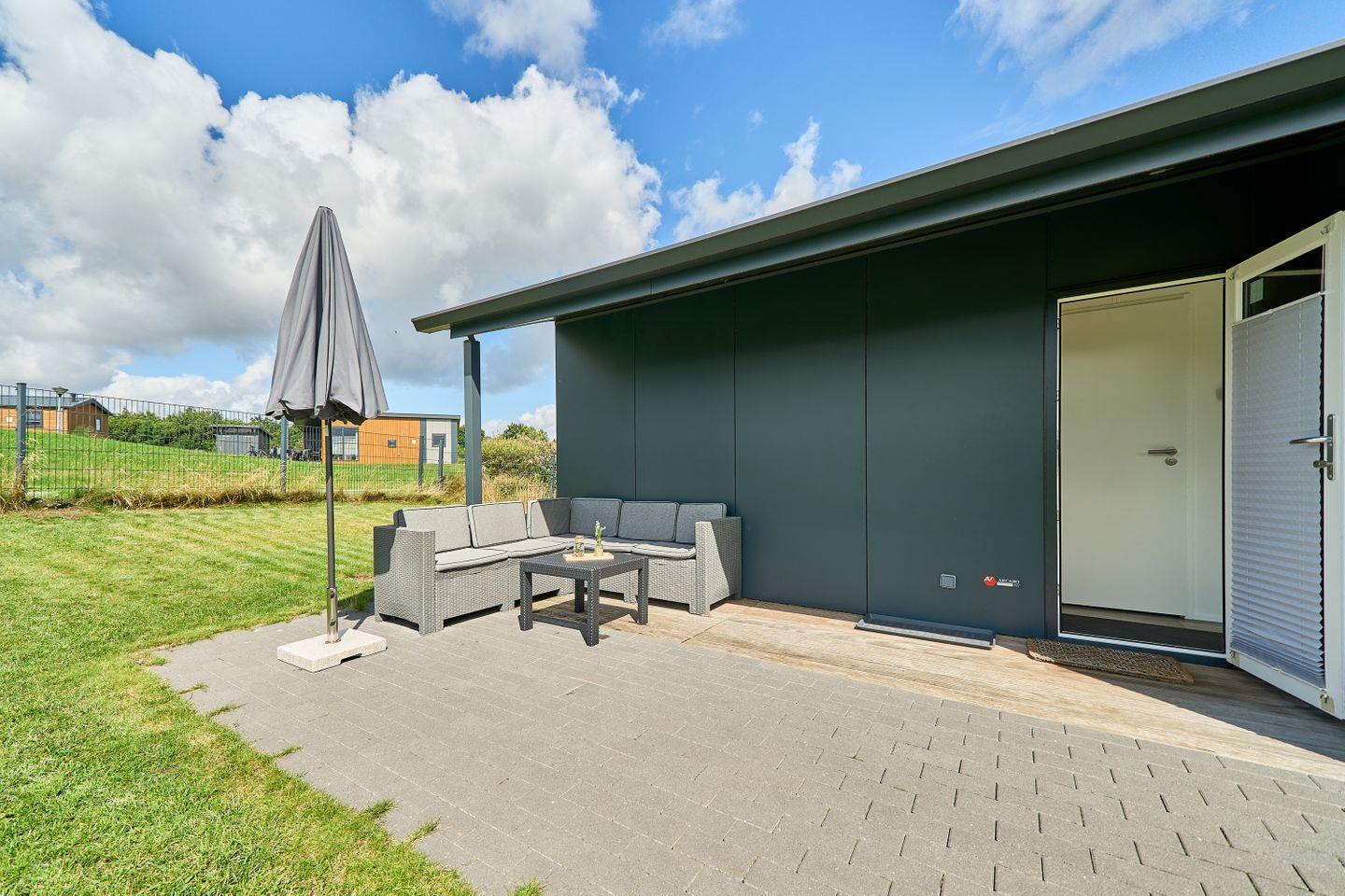 Die offene Küche ist in das Wohnzimmer integriert und hochwertig ausgestattet, unter anderem mit Herd, Backofen, Kühlschrank, Gefrierfach, Geschirrspüler, Kaffeemaschine, Wasserkocher, Toaster, Esstisch sowie vollständigen Küchenutensilien, Geschirr und Besteck. Geschirrhandtücher sind vorhanden. Das Wohnzimmer lädt mit einem Sofa und einem Fernseher zum Entspannen ein. Kostenlos verfügbares WLAN ermöglicht komfortables Surfen. Für gemütliche gemeinsame Stunden steht eine möblierte Terrasse zur Verfügung, ideal zum Verweilen oder für gemeinsame Mahlzeiten im Freien.