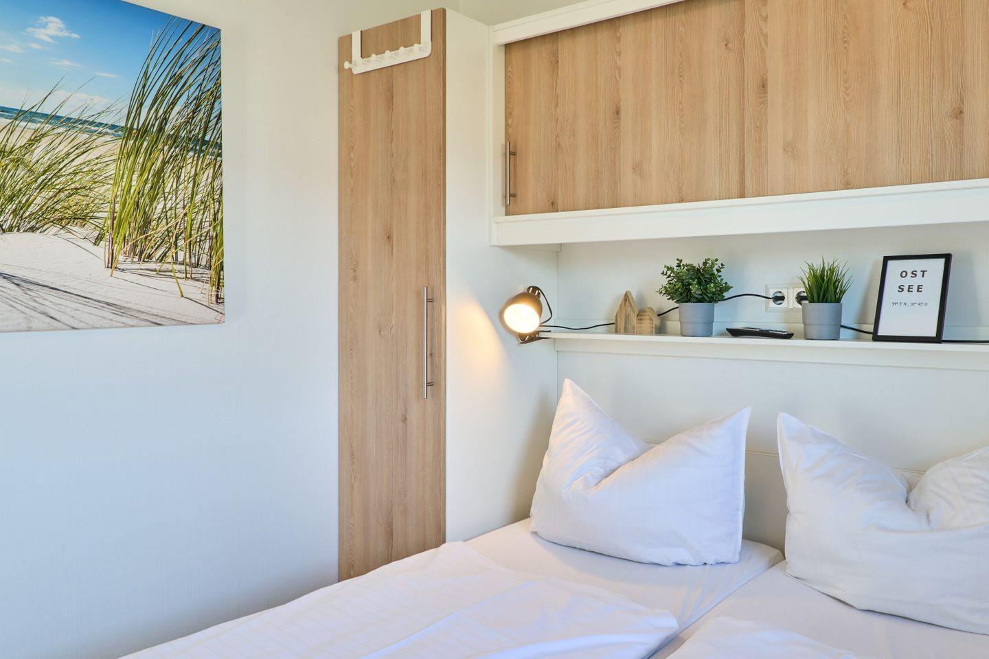 Das Ferienhaus ist mit zwei separaten Schlafzimmern ausgestattet, die insgesamt vier Schlafgelegenheiten bieten. Das modern gestaltete Badezimmer verfügt über eine Dusche, Waschbecken, WC, Spiegel und durchdachten Sichtschutz an allen Fenstern, der Privatsphäre garantiert. Handtücher und Bettwäsche stehen Ihnen ebenso zur Verfügung.