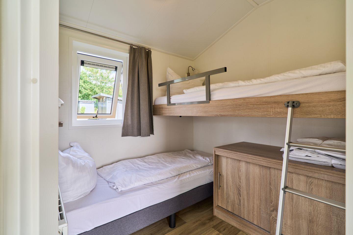 Das Ferienhaus verfügt über insgesamt drei Zimmer und bietet mit zwei Schlafzimmern Platz für bis zu vier Gäste. Moderne Annehmlichkeiten wie kostenfreies WLAN, ein TV sowie sichtgeschützte Fenster sorgen für Komfort und Privatsphäre. Die offene Küche zum Wohnzimmer ist voll ausgestattet und verfügt unter anderem über einen Herd, Backofen, Kühlschrank mit Gefrierfach, Geschirrspüler, Kaffeemaschine, Wasserkocher, Toaster sowie genügend Geschirr und Küchenutensilien. Ein Esstisch, ein gemütliches Sofa und ein TV runden das wohnliche Ambiente ab. Ein Badezimmer mit Dusche, Waschbecken und WC steht Ihnen zur Verfügung und Handtücher sowie Bettwäsche werden bereitgestellt.