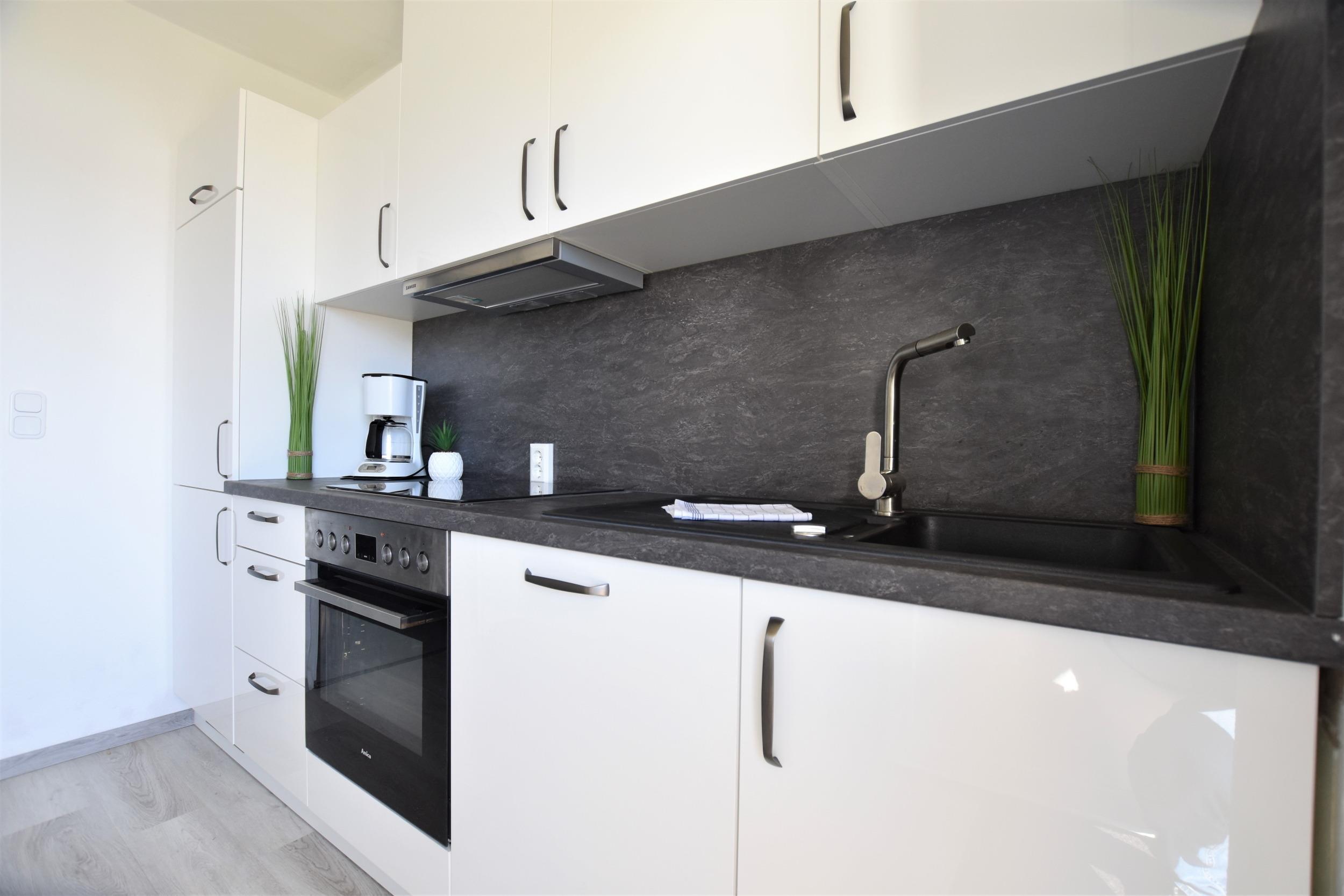 Im Eingangsbereich Ihres Ferienappartements befindet sich eine voll ausgestattete Küche mit Geschirrspüler,Toaster, Backofen,Cerankochfeld usw... von dort gelangen Sie in Ihren Wohn- Schlafraum. Hier ist alles: frisch und hell, gemütlich und geschmackvoll mit viel Liebe zum Detail eingerichtet... ein Esstisch für 4 Personen, ein Schrank für Ihre Urlaubsgarderobe, ein hochwertiges Doppelbett (1x140x200), eine hochwertige Schlafcouch (1x160x200), Stubentisch, Flat-TV und direktem Zugang zum bestuhlen Balkon. ein Badezimmer mit Badewann mit Duschfunktion, Spiegel und WC.