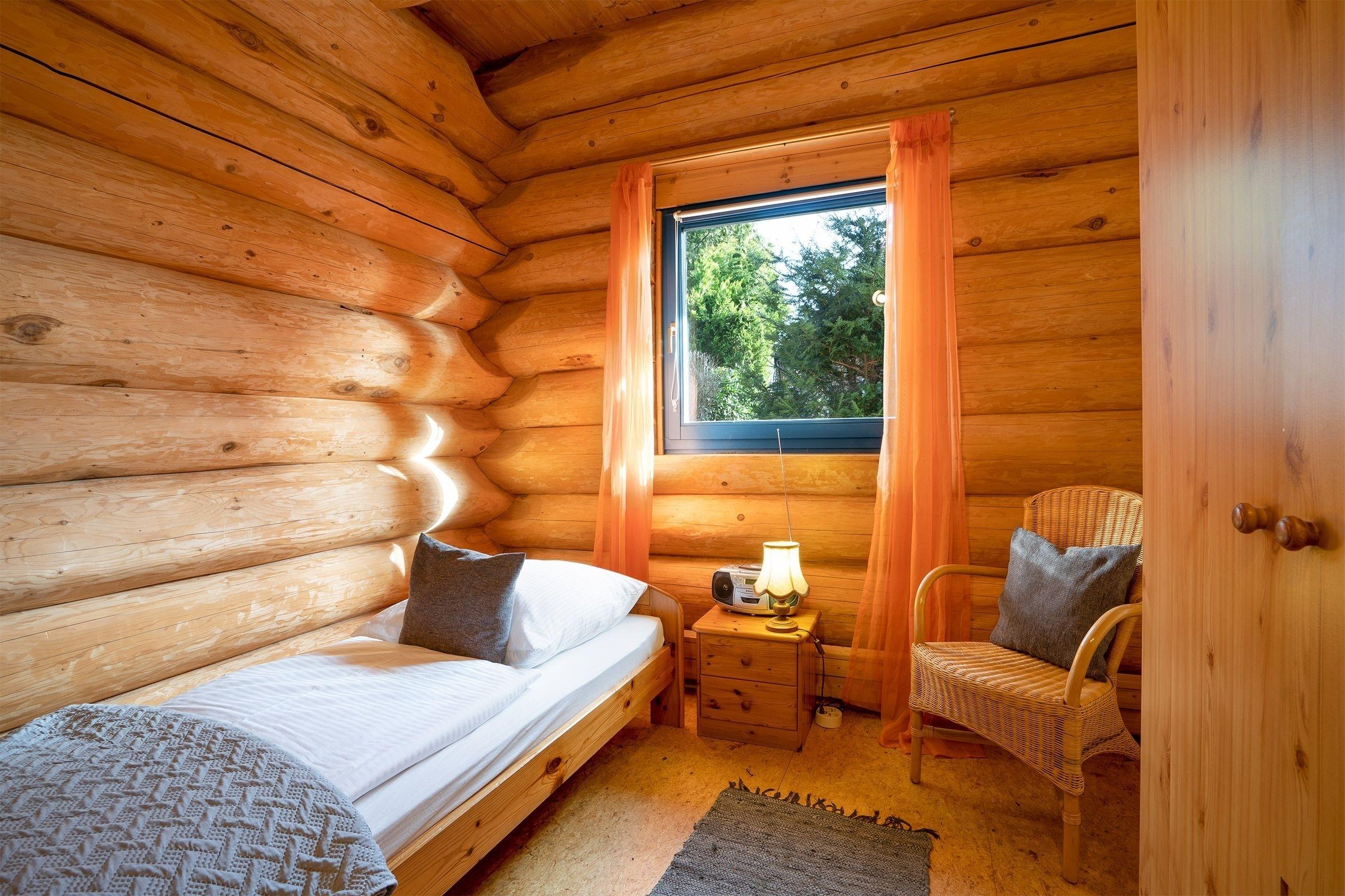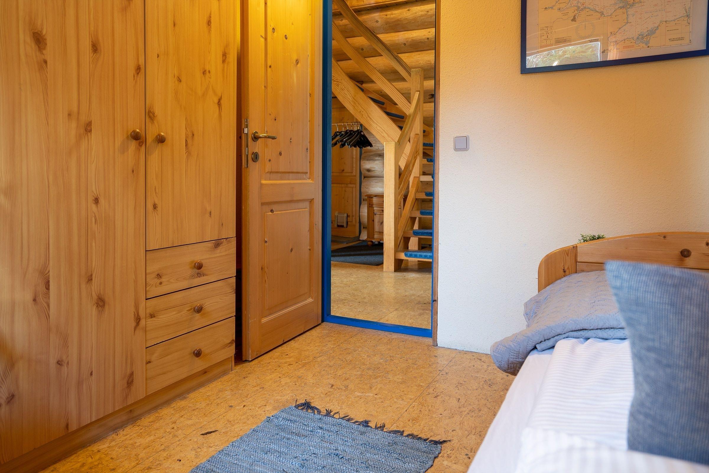 Schlafzimmer 1 (EG): 1 Einzelbett (90x200 cm), Kleiderschrank, Verdunkelung (Rollo)