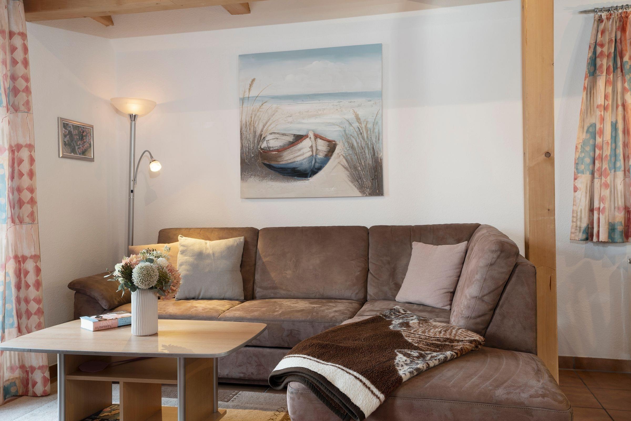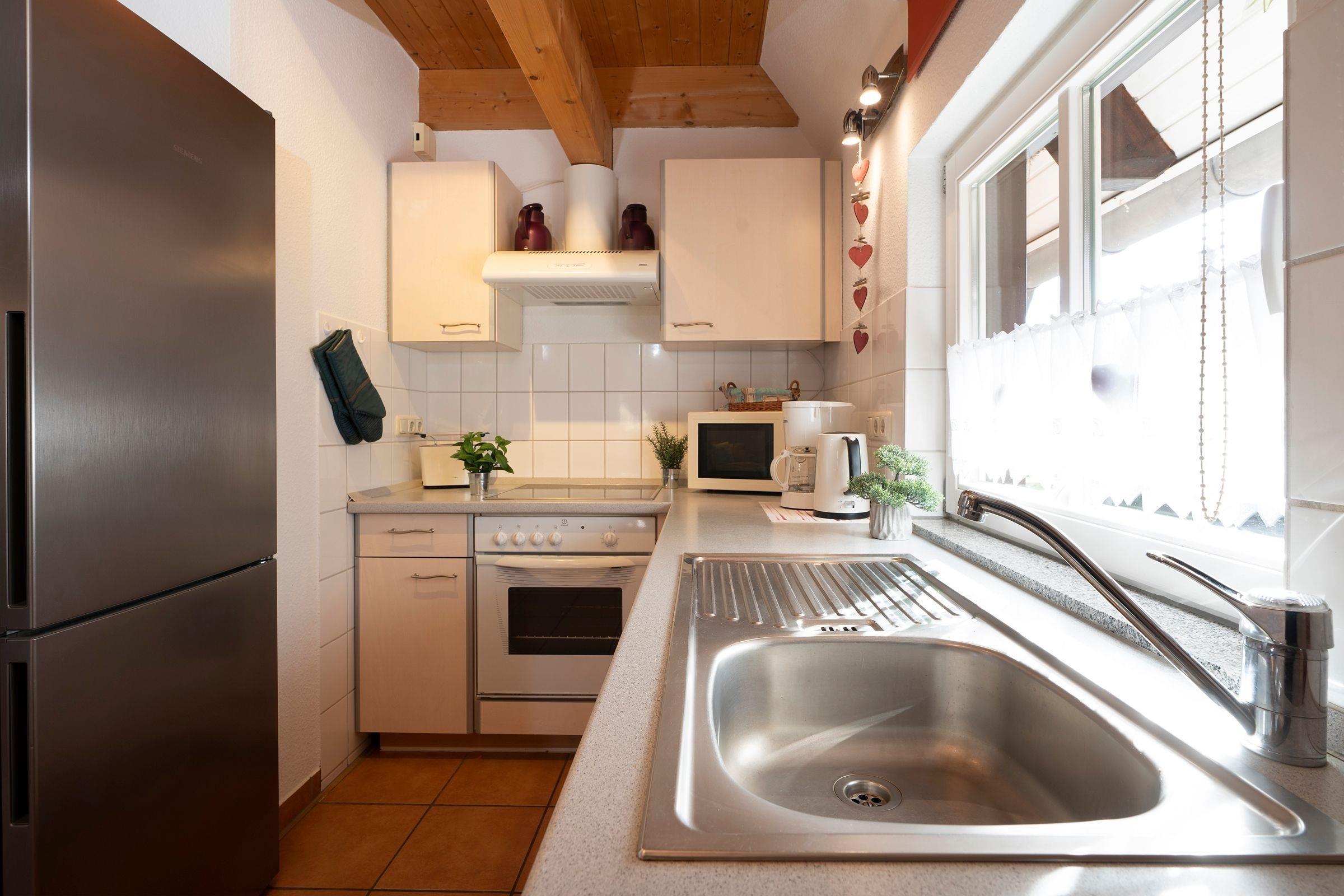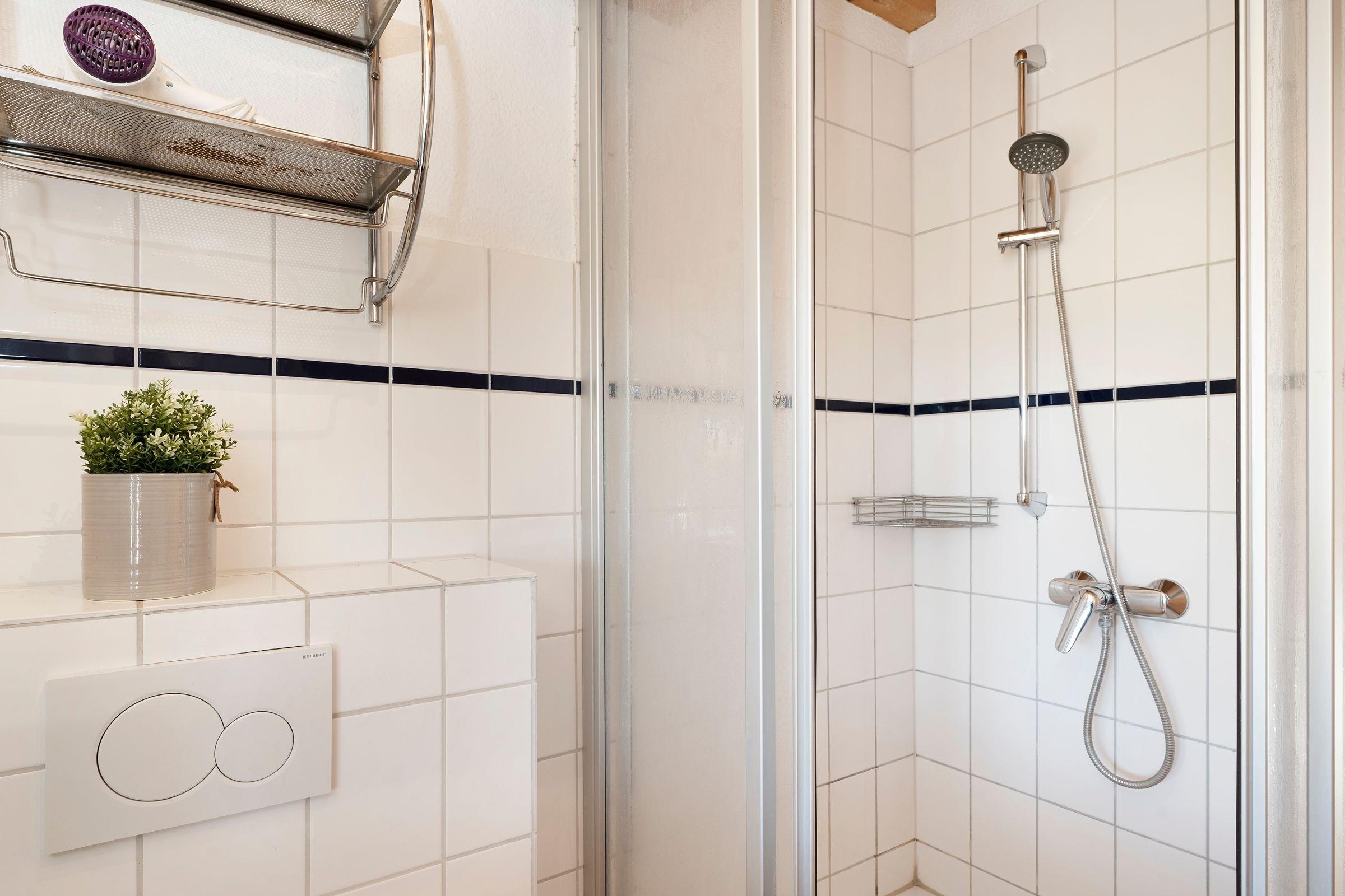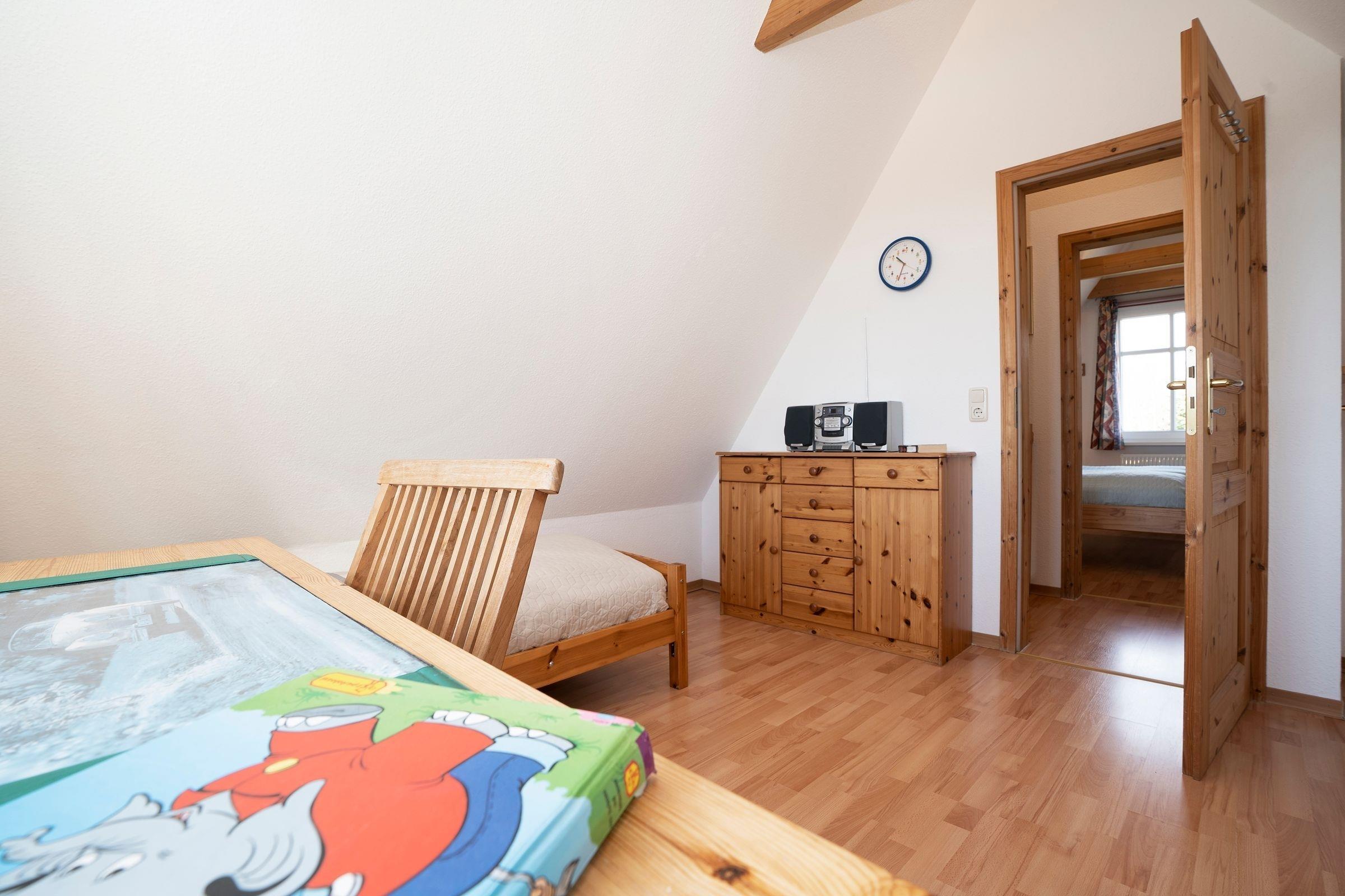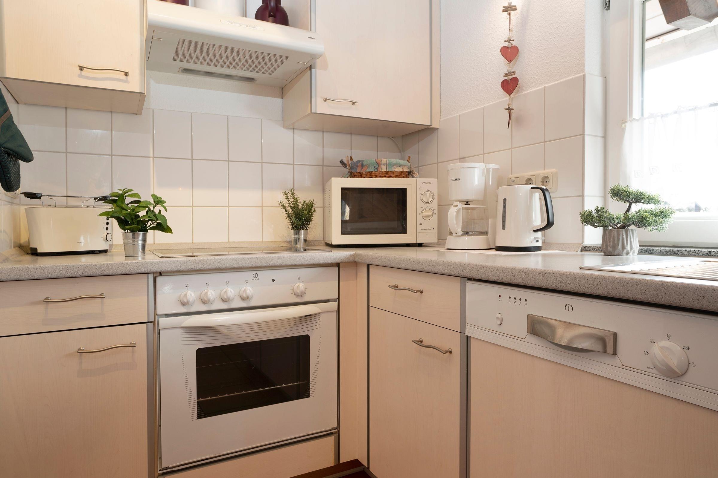 Im Erdgeschoss befindet sich der offene, großzügig geschnittene Wohn- und Essbereich mit direktem Zugang auf die möblierte Terrasse. Der Wohnbereich ist mit einem bequemen Ecksofa und einem Sessel ausgestattet. Der Esstisch befindet sich direkt am Fenster und bietet ausreichend Platz für 6 Personen. Ein Highlight ist der gusseiserne Kaminofen, der für eine behagliche Atmosphäre sorgt. Für Unterhaltung im Urlaub sorgen der Blu-Ray-Player, der CD/DVD-Player und der Flachbildfernseher. Die Küche ist z. B. mit einem Backofen, einem Kühlschrank sowie einem Geschirrspüler gut ausgestattet. Beide Schlafzimmer, eines davon mit einem Doppelbett (2x 90x200 cm), das andere mit 2 Einzelbetten (je 90x200 cm), befinden sich in der 1. Etage. Die Schlafzimmer lassen sich mit Rollos und Gardinen verdunkeln. Neben vielen Extras stehen Ihnen auch eine Waschmaschine im Haus sowie ein Strandkorb im Garten zur Verfügung. Der WLAN-Anschluss ist selbstverständlich inklusive.