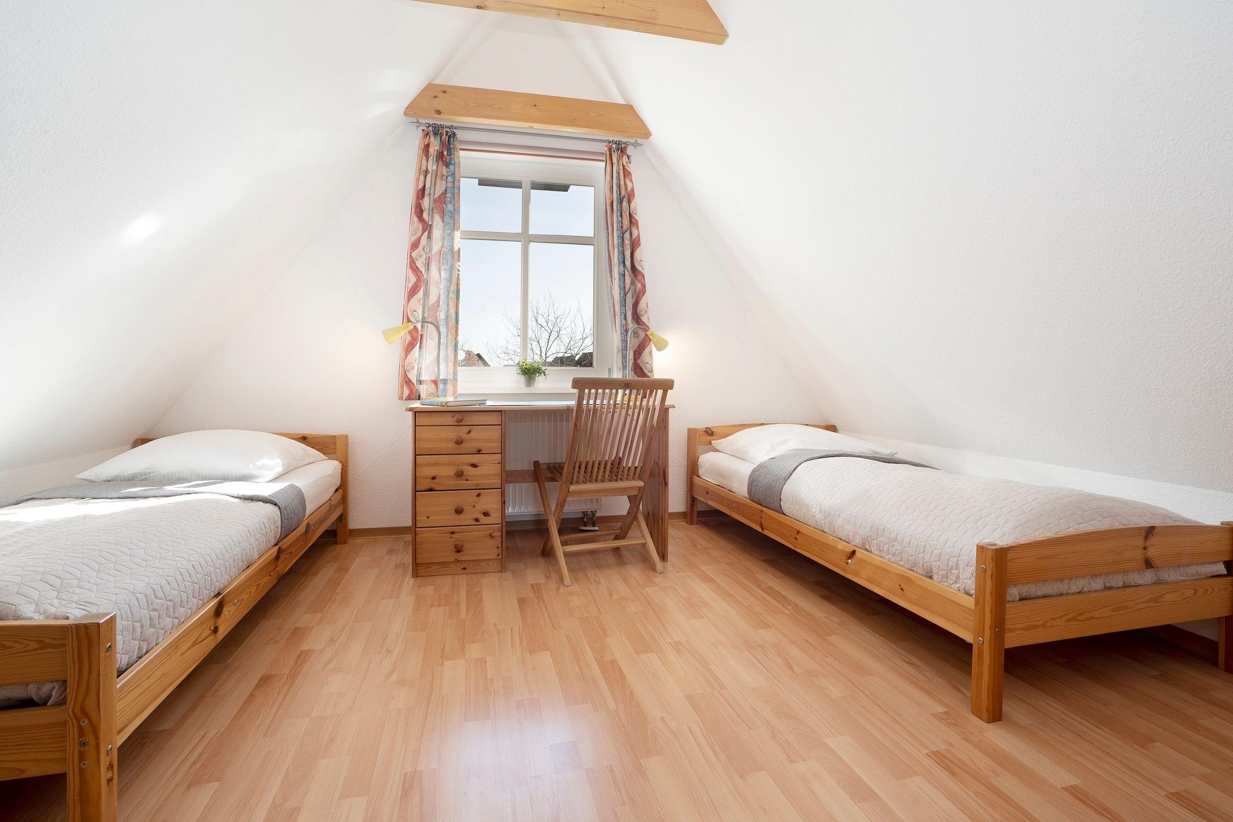 Kinderzimmer: 2 Einzelbetten (2x 90x200 cm), Verdunkelung (Plissees)