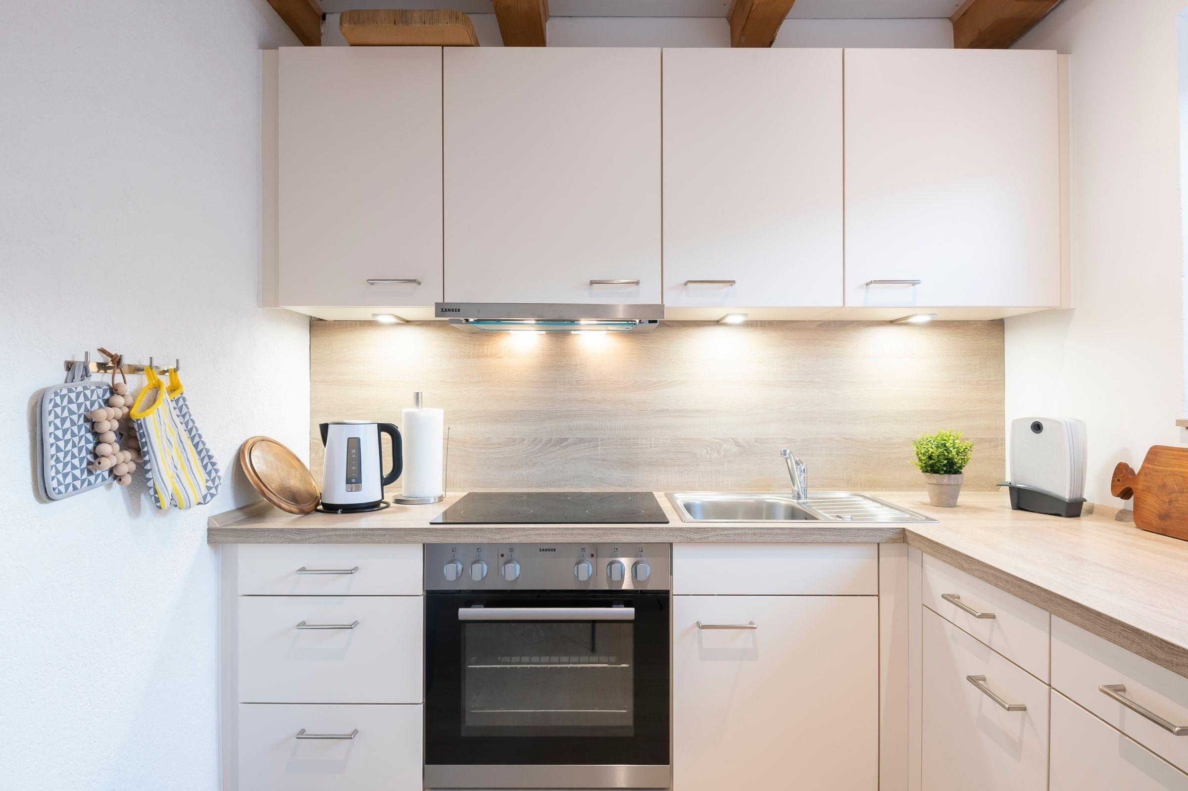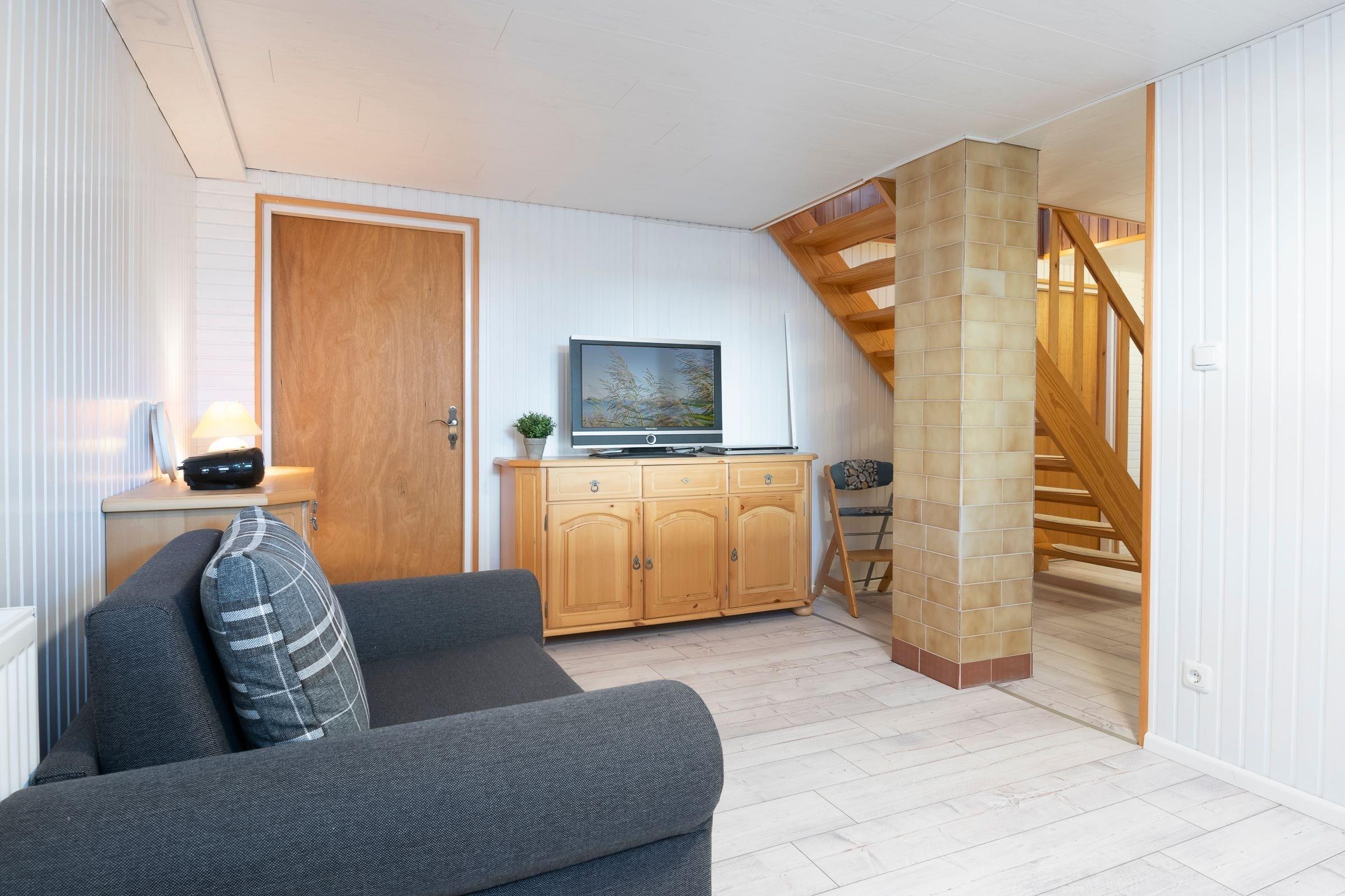 Im gemütlichen Wohnzimmer sorgt ein Kamin für kuschelig warme Abende. Zu Ihrer Musik durchs Wohnzimmer tanzen oder einen Kinoabend mit der ganzen Familie erleben? Der CD-Player, das Radio, der DVD Player sowie der Blue-Ray-Player machen es möglich. Die separate Küche lässt die Herzen der Hobbyköche höher schlagen. Zur Ausstattung gehören ein Herd mit 4-Platten Ceranfeld, ein Backofen sowie ein Kühlschrank mit Gefrierfach. Eine Senseo-Kaffeepad-Maschine sorgt für den Kaffeegenuss. Die Spülmaschine übernimmt anschließend gerne den Abwasch für Sie. Sie möchten in Ihrem Urlaub Ihren Lieblingskuchen nicht missen? Ein Mixer, eine Küchenwaage und auch eine Springform gehören ebenfalls zur Ausstattung.