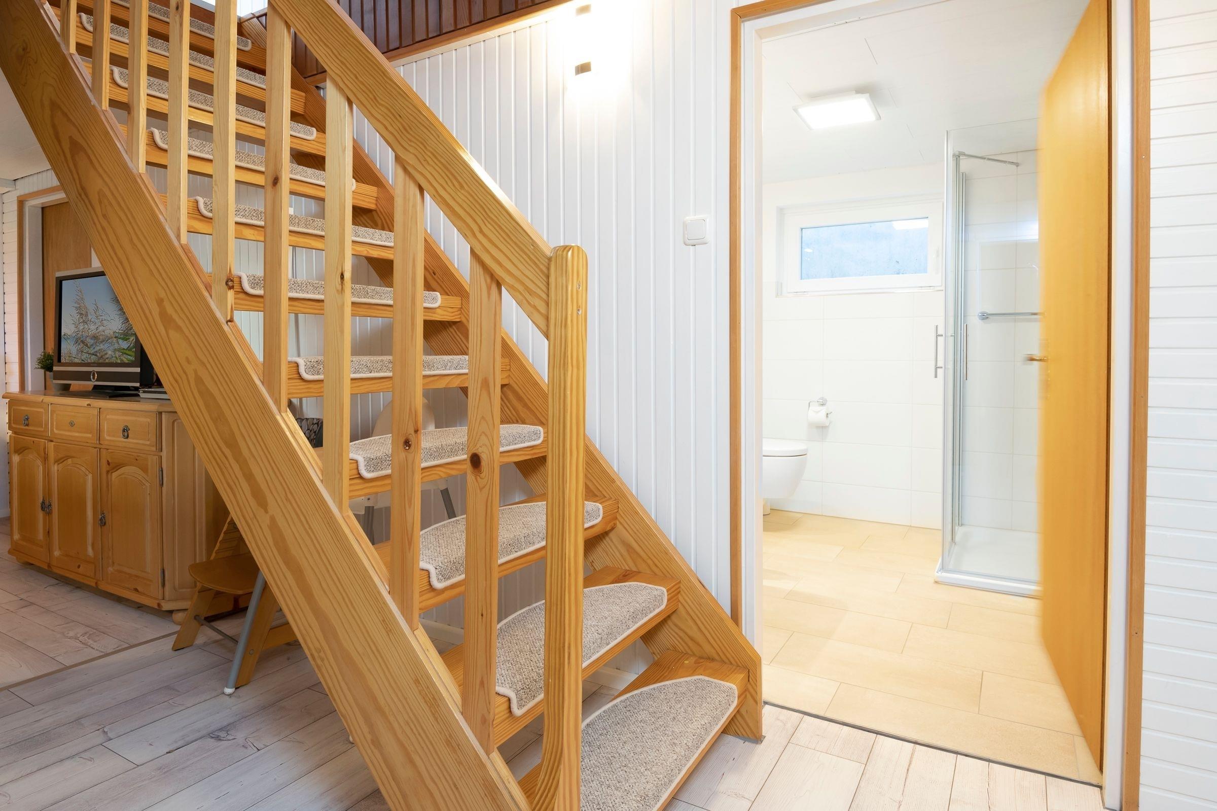 Das Ferienhaus verfügt über 2 moderne Badezimmer. Die Handtuchheizung sorgt für kuscheliges Frottee, die bodentiefe Dusche ermöglicht auch nach langen Strandspaziergängen einen bequemen Einstieg in das kühle Nass. Ein Föhn liegt für Sie bereit. Für Ihre angenehme Nachtruhe stehen 6 Schlafplätze in 3 Schlafzimmern bereit: Das erste Schlafzimmer verfügt über ein bequemes Doppelbett (2x 90x200 cm) und bietet zusätzlich genügend Platz für ein Kinderreisebett. Im zweiten Schlafzimmer laden 2 Einzelbetten (je 90x200 cm) ins Land der Träume ein. Für die ausreichende Verdunklung sorgen in diesem und im vorher genannten Schlafzimmer die Außenrollläden oder die Vorhänge. Im dritten und letzten Schlafzimmer im Untergeschoss wartet ebenfalls ein gemütliches Doppelbett auf Sie. Die Fenster können mit Vorhängen verdunkelt werden. In allen 3 Schlafzimmern steht jeweils 1 Kleiderschrank mit ausreichend Stauraum für Sie zur Verfügung.