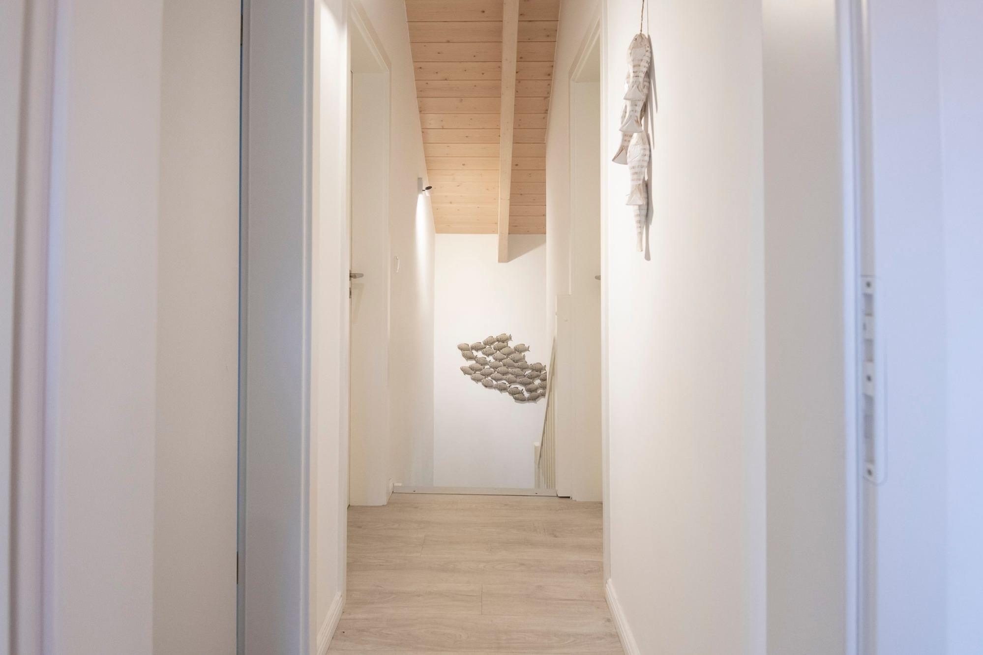 Der schwedische Charme ist auch im Haus zu spüren. Entspannen Sie nach einem ereignisreichen Tag in der Sauna oder bei flackerndem Kaminfeuer und einem Glas Wein. Die untere Etage ist offen und modern gehalten und bietet somit Raum für viel Familienzeit. Zusammensein, Gemütlichkeit und Ruhe stehen hier im Mittelpunkt. Weiteren Platz zum Toben und Erholen bietet die extra große Terrasse, von der Sie in den umliegenden Garten gelangen. Bei gutem Wetter können Sie das Abendessen nach draußen verlegen, während Ihnen die warme Ostseeluft und der Grillduft um die Nase wehen. Die Highlights im Garten sind der hochwertige Gasgrill und ein Strandkorb. In der oberen Etage befinden sich 3 Schlafzimmer. 2 davon ausgestattet mit einem komfortablen Doppelbett, das 3. mit zwei Einzelbetten. Zwei weitere Schlafmöglichkeiten bietet das gemütliche Schlafsofa im Erdgeschoss, welches durchdacht ausgewählt wurde und mit einem komfortablen Lattenrost ausgestattet ist. Hier schlafen also alle Gäste himmlisch. Beide Etagen verfügen über ein Badezimmer, sodass auch bei der morgendlichen Routine kein Platzmangel herrscht. Besuchen Sie Süssauer Strand und entspannen Sie ganz in schwedischem Stil. Der WLAN-Anschluss ist selbstverständlich inklusive.