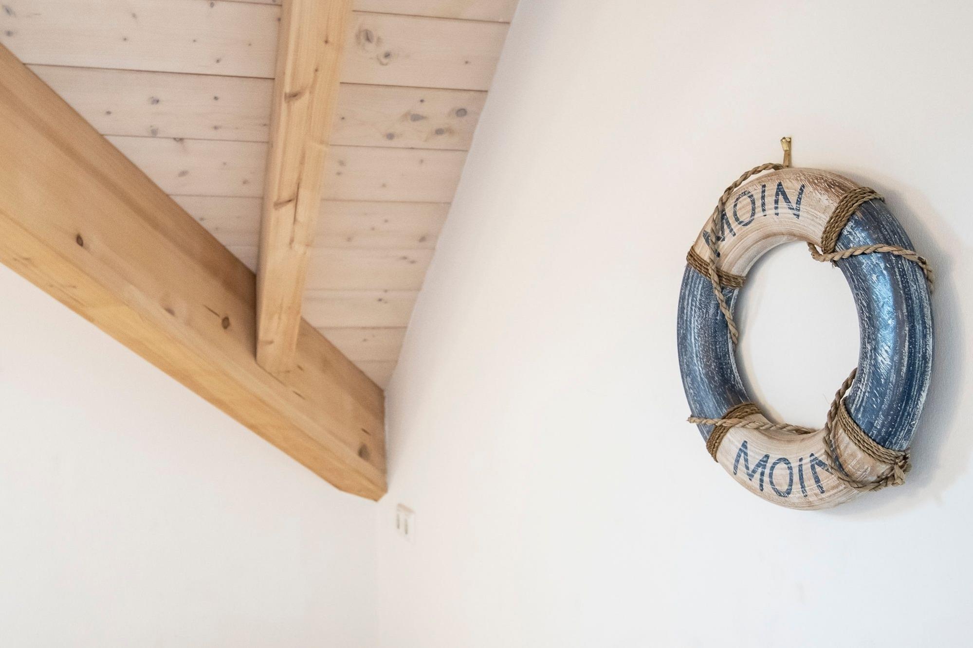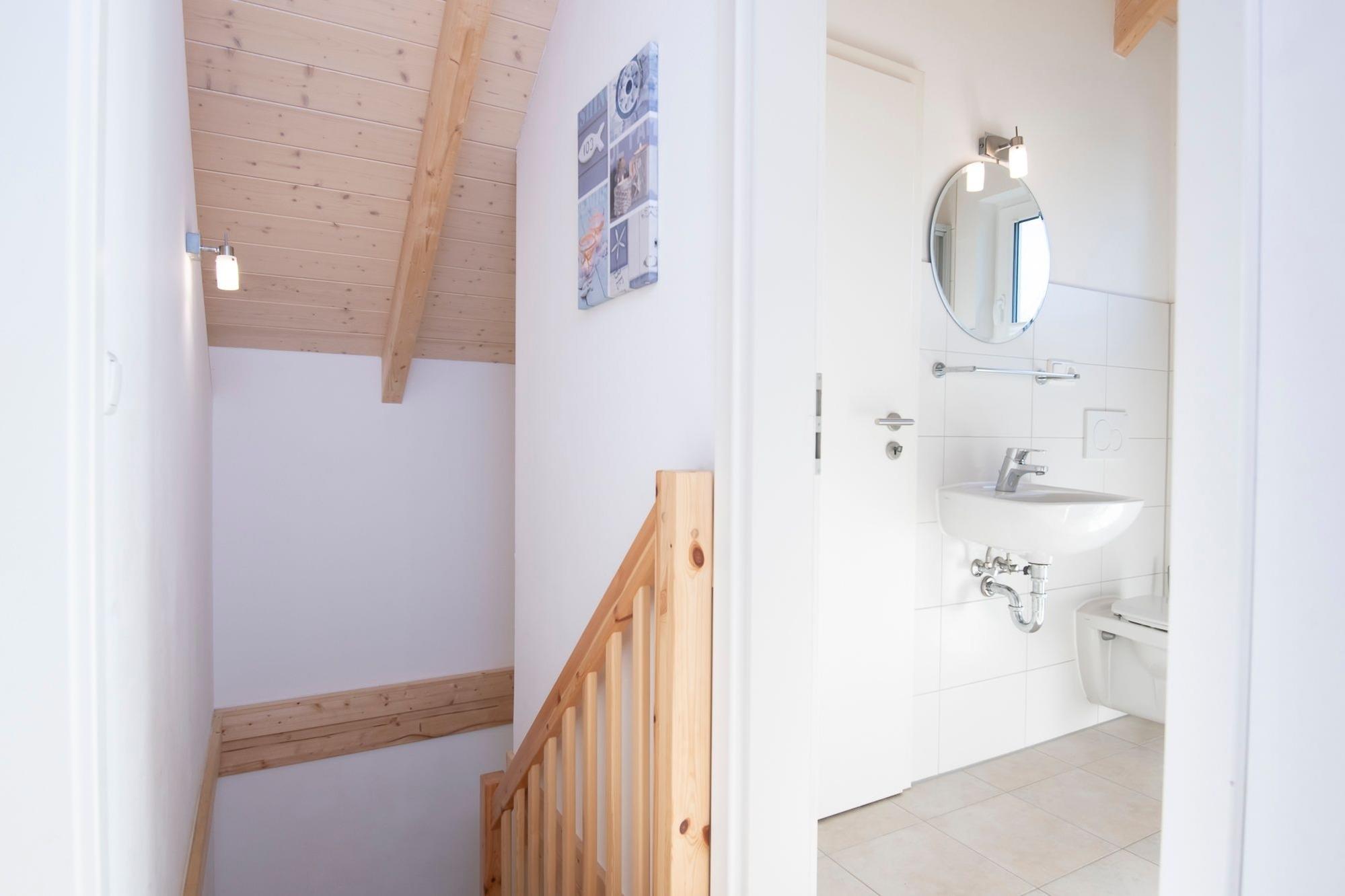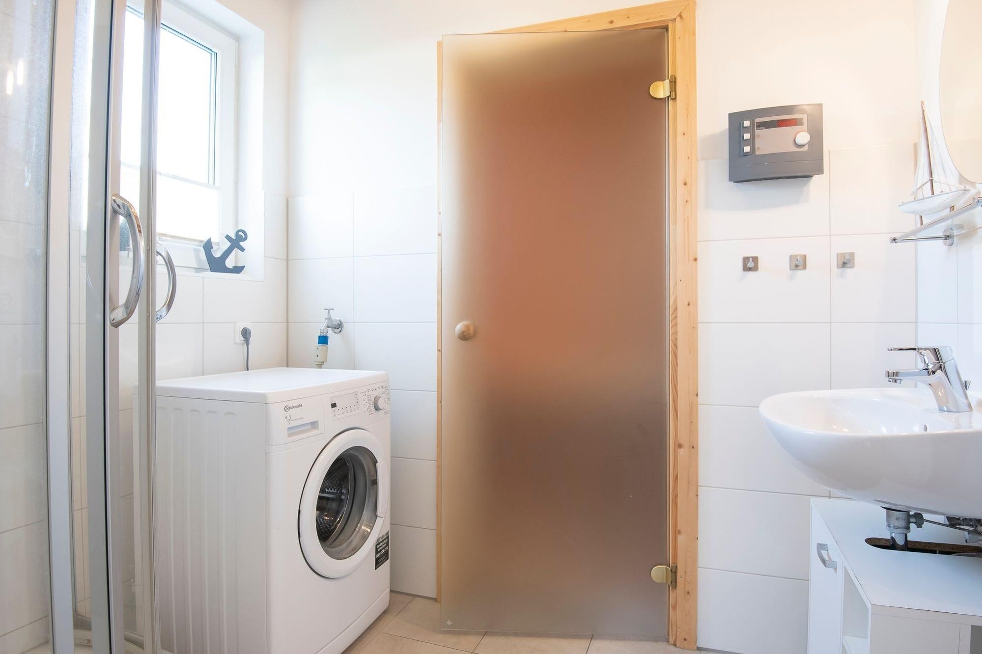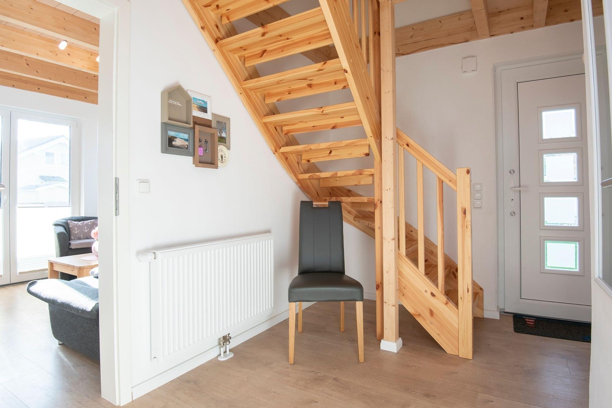 Im Erdgeschoss empfängt sie ein heller Flur über den Sie in das 1. Obergeschoss und in den großzügigen und lichtdurchfluteten Wohnraum mit integrierter, voll ausgestatteter Küche gelangen. Genießen Sie hier die gemeinsame Familienzeit mit leckerem Essen oder geselligen Spielen. Bei gutem Wetter verlagern Sie den Urlaubsalltag auch gern nach draußen auf die großen Terrasse und den umliegenden Garten. Für kühlere Tage sorgt unter anderem der Kaminofen für kuschelige Wärme. Nach erlebnisreichen Tagen können Sie in der heißen Sauna relaxen, während die kleinen Entdecker in einem der 3 vorhandenen Schlafzimmer von den vielen Eindrücken träumen. Zwei Schlafzimmer sind mit Doppelbetten und eins mit zwei Einzelbetten ausgestattet. Außerdem verfügt die obere Etage über ein 2. hell gefliestes und modernes Badezimmer mit Dusche. Der WLAN-Anschluss ist selbstverständlich inklusive.
