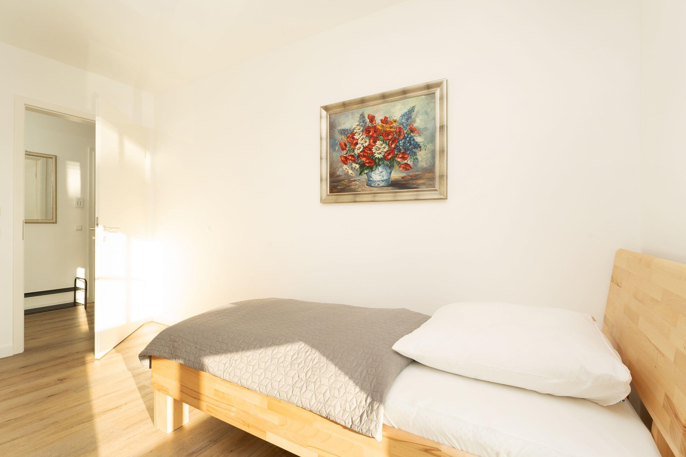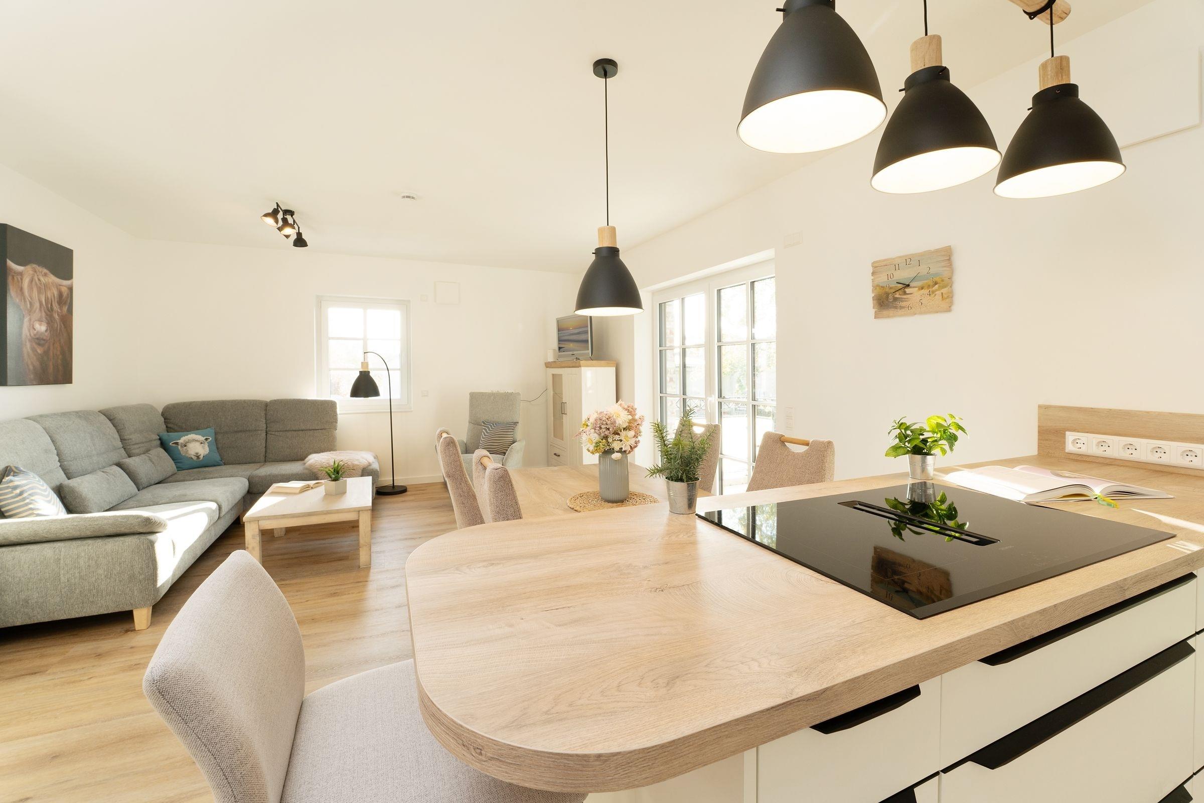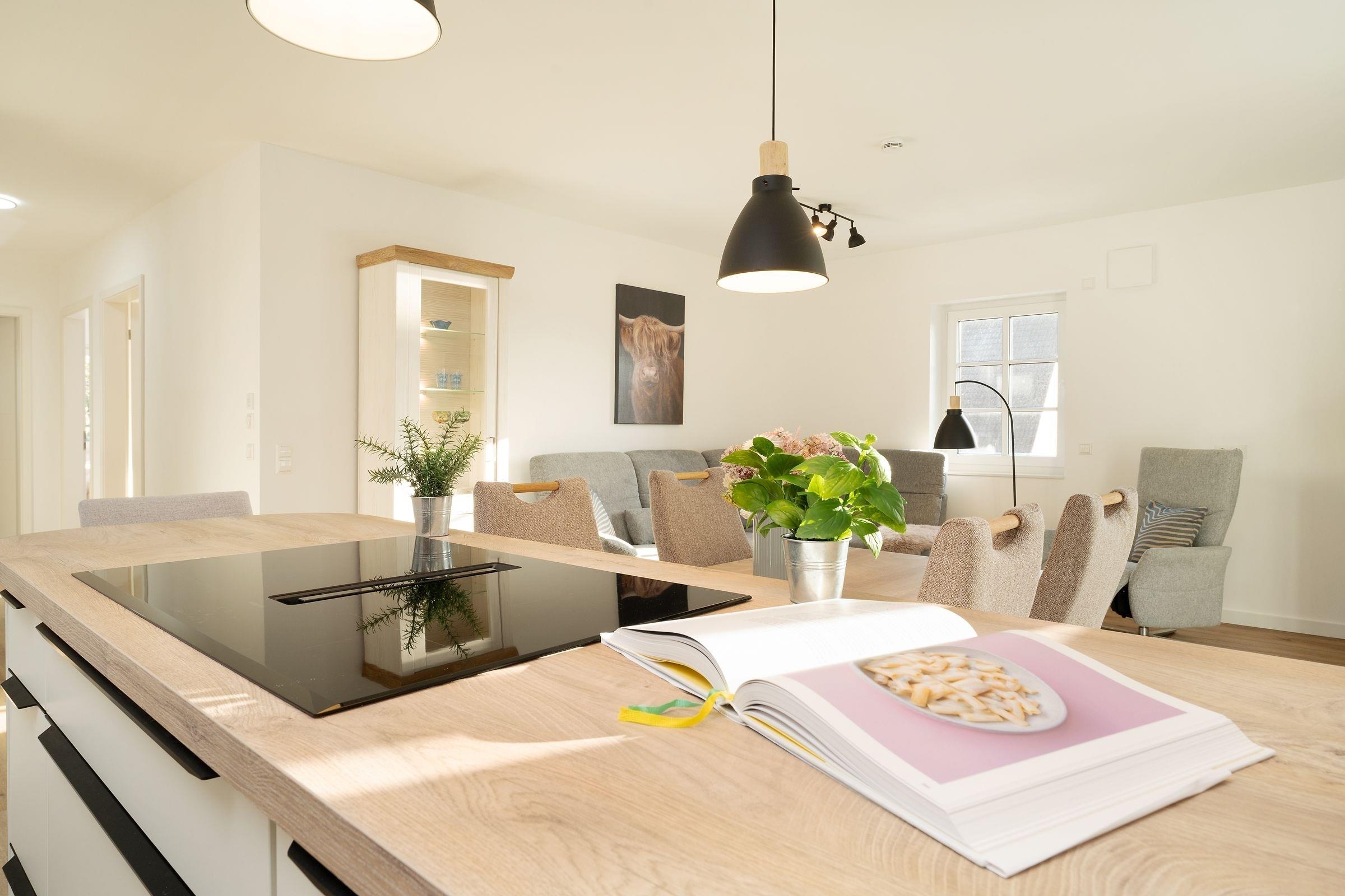 Herzlich willkommen! Ihr stilvolles Zuhause auf Zeit verwöhnt Sie mit einer edlen und gleichzeitig gemütlichen Einrichtung. Machen Sie es sich vor dem TV bequem oder genießen Sie die Sonnenstrahlen auf dem möblierten Südbalkon. Die gute Seeluft macht natürlich hungrig. Die offene, moderne Küche mit Induktionsherd, Mikrowelle und Spülmaschine bietet Ihnen viele Extras, die Sie begeistern werden. Für die Nacht stehen Ihnen ein Schlafzimmer mit einem Doppelbett (2x 90x200 cm) sowie ein Schlafzimmer mit zwei Einzelbetten (je 100x200 cm) zur Verfügung. Verdunkelt wird jeweils mit Außenrollläden. Das tageslichthelle Bad mit bodengleicher Dusche, Handtuchwärmer und Fußbodenheizung lässt keine Wünsche offen, um gut in den neuen Urlaubstag zu starten.