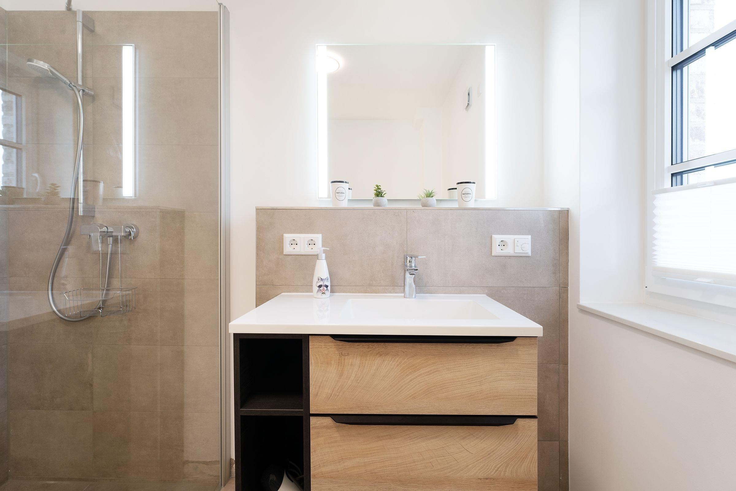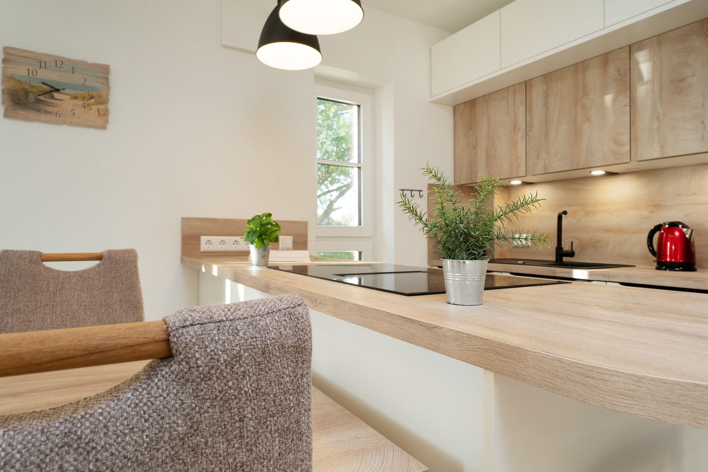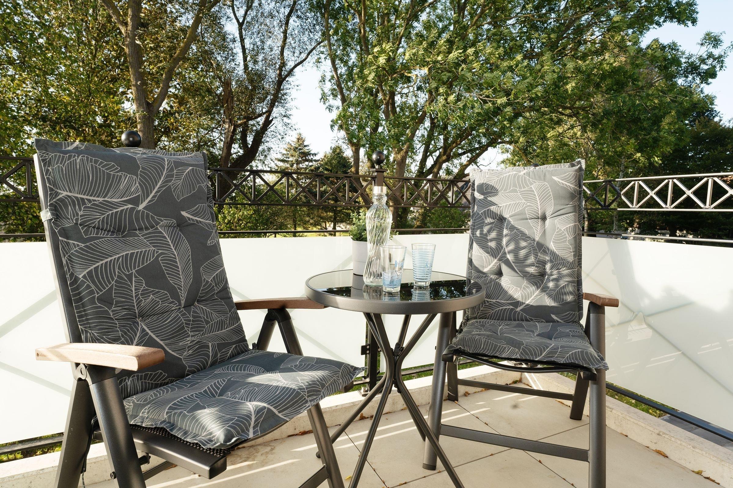 Herzlich willkommen! Ihr stilvolles Zuhause auf Zeit verwöhnt Sie mit einer edlen und gleichzeitig gemütlichen Einrichtung. Machen Sie es sich vor dem TV bequem oder genießen Sie die Sonnenstrahlen auf dem möblierten Südbalkon. Die gute Seeluft macht natürlich hungrig. Die offene, moderne Küche mit Induktionsherd, Mikrowelle und Spülmaschine bietet Ihnen viele Extras, die Sie begeistern werden. Für die Nacht stehen Ihnen ein Schlafzimmer mit einem Doppelbett (2x 90x200 cm) sowie ein Schlafzimmer mit zwei Einzelbetten (je 100x200 cm) zur Verfügung. Verdunkelt wird jeweils mit Außenrollläden. Das tageslichthelle Bad mit bodengleicher Dusche, Handtuchwärmer und Fußbodenheizung lässt keine Wünsche offen, um gut in den neuen Urlaubstag zu starten.