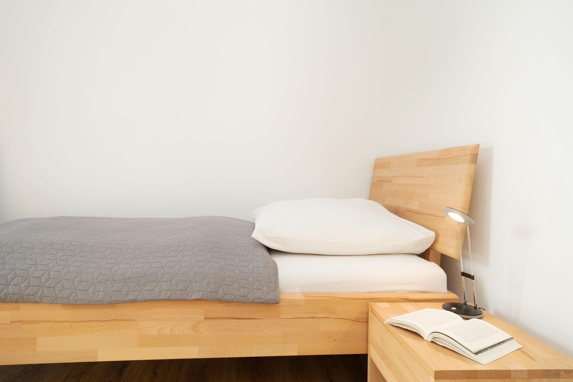 Schlafzimmer 1: 1 Doppelbett (2x 90x200 cm), Kleiderschrank, Verdunkelung: Außenrollladen, Platz für ein Babybett vorhanden