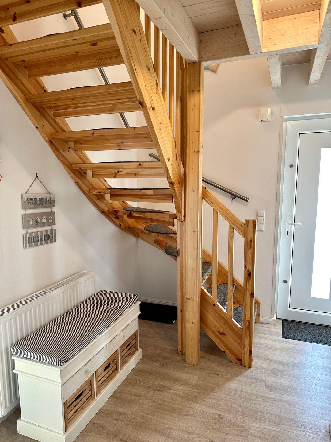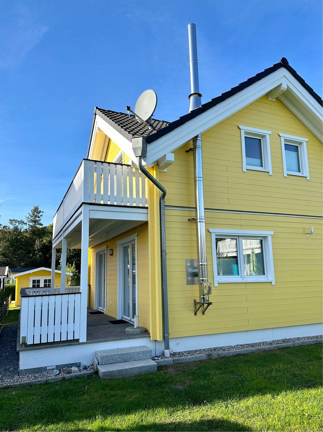 Im ersten Stock haben Sie gleich von zwei der drei Schlafzimmer (alle Matratzen haben die Abmessung 90x200 cm) direkten Zutritt zum Balkon und können dort direkt nach dem Aufstehen den Blick über die Wiesen bis hin zur Ostsee schweifen lassen. Das Haus verfügt über 4 TV-Geräte. Für die kleinen Gäste stehen ein Kinderhochstuhl und ein Kinderreisebett kostenfrei bereit. Direkt vor dem Haus stehen Ihnen 2 PKW-Außenstellplätze zur Verfügung. Ihre Fahrräder können im Schuppen abgestellt werden. Bitte haben Sie Verständnis, dass es sich bei diesem Ferienhaus um ein Nichtraucherdomizil handelt. Der WLAN-Anschluss ist selbstverständlich inklusive. Sie möchten Ihren Hund mitbringen? Kein Problem! Ein Hund ist herzlich willkommen!