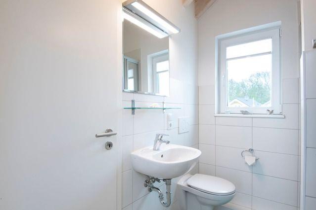 Das Ferienhaus verfügt über zwei Badezimmer, jeweils mit Dusche, Waschbecken, Spiegel und Fenster. Ein Haartrockner steht Ihnen zur Verfügung. Für zusätzlichen Komfort sorgt ein separates Gäste-WC im Erdgeschoss. Eine Waschmaschine, Wäscheständer und Staubsauger sind ebenfalls vorhanden.