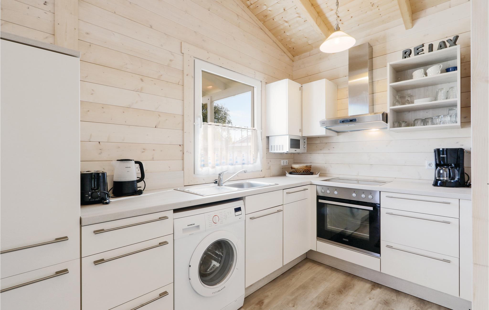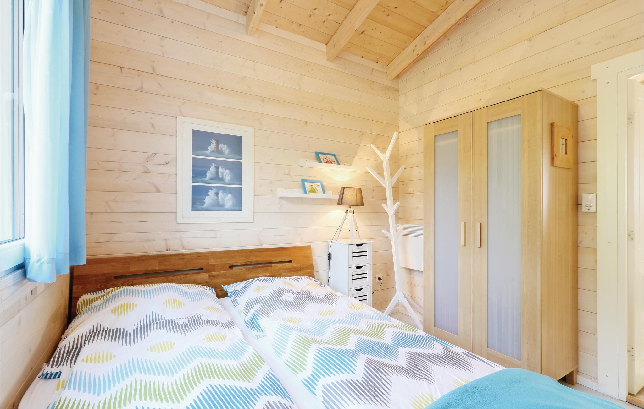 Das Holzhaus ist modern und gemütlich eingerichtet. Hier finden Sie zwei separate Schlafzimmer mit einem Doppelbett sowie zwei Einzelbetten. Eine weitere Schlafmöglichkeit befindet sich im Wohn-/ Essbereich. Die kleine Küchenzeile ist vollständig ausgestattet und bietet Ihnen jeglichen Komfort für Ihren Urlaub. Die offene Terrasse vor dem Haus lädt zu gemeinsamen Mahlzeiten ein, ein Grill steht Ihnen zur Verfügung. Hier können Sie entspannen und Ihre Zeit mit der Familie genießen.