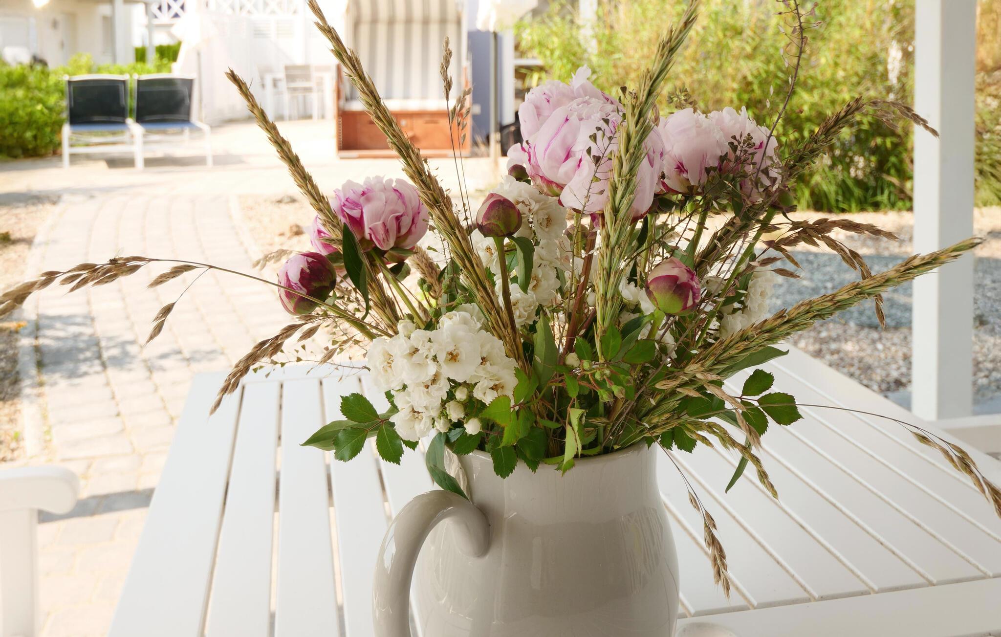 Das Haus verfügt zudem über einen Balkon sowie eine große Terrasse mit Gartenmöbeln und eigenem Grill. Als Highlight steht Ihnen hier ein Strandkorb zur Verfügung. Hier lässt es sich herrlich entspannen und Sie können die Sonnenstrahlen im windgeschützen Strandkorb genießen.