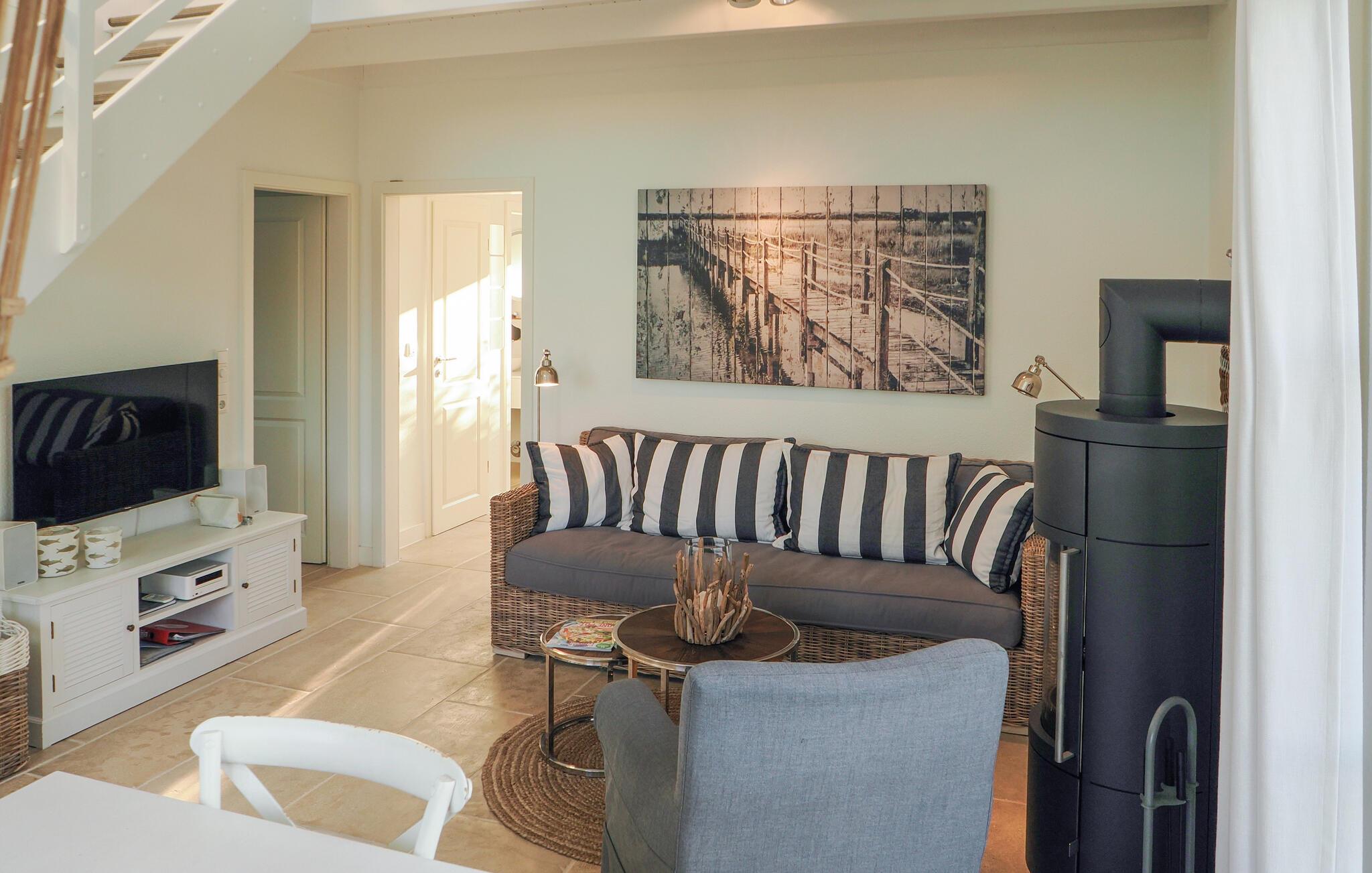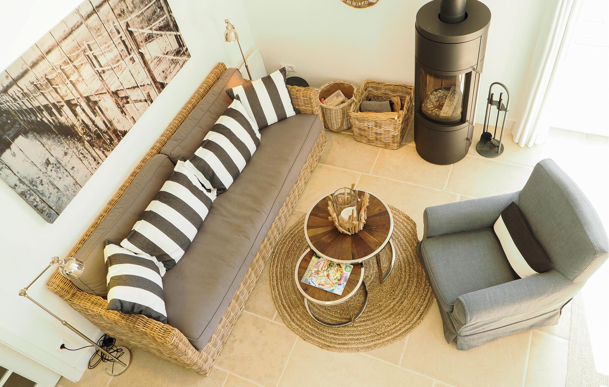 Gemütliches Ferienhaus am Süssauer Strand mit Kamin, Balkon, Terrasse und Meerblick für erholsame Urlaubstage.