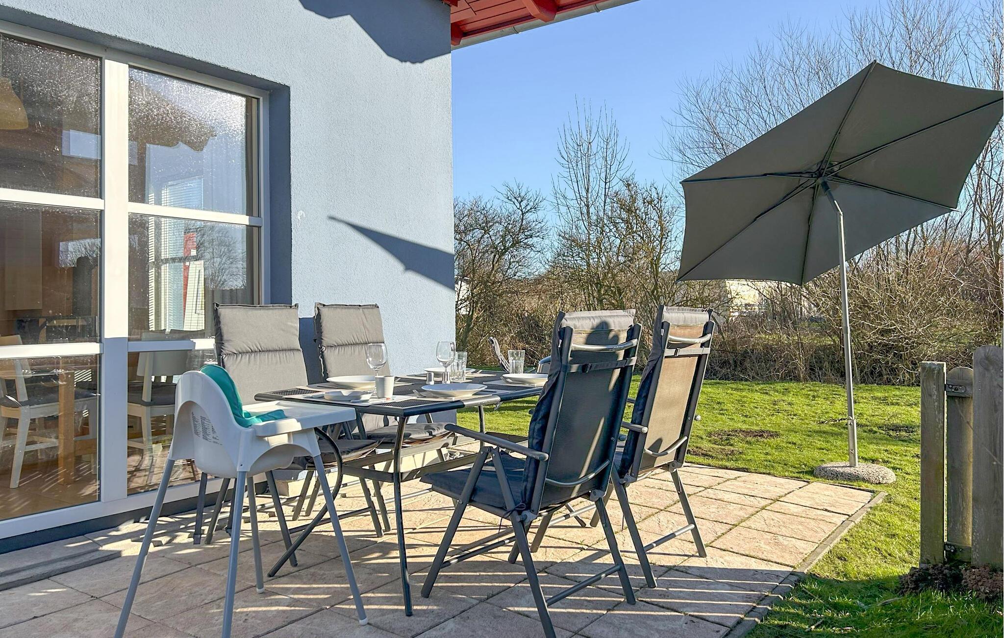 Vom Wohn/Essbereich (mit offener Küche und Kaminofen) erreicht man über eine Treppe die breite Galerie mit einem zweiten, großzügigen Wohnbereich (22 m2). Von hier aus können Sie eine Panorama-Aussicht über die Ostsee genießen. Im Erdgeschoss befinden sich zwei Schlafzimmer und zwei Bäder. Auf der Galerie befindet sich ein zusätzliches Bett. Das Haus verfügt zudem über eine große Südterrasse mit Gartenmöbeln und eigenem Grill, wo es sich herrlich entspannen lässt. Sie ist mit einem Sichtschutz ausgestattet, so dass Sie auch draußen Ihre Privatsphäre genießen können.