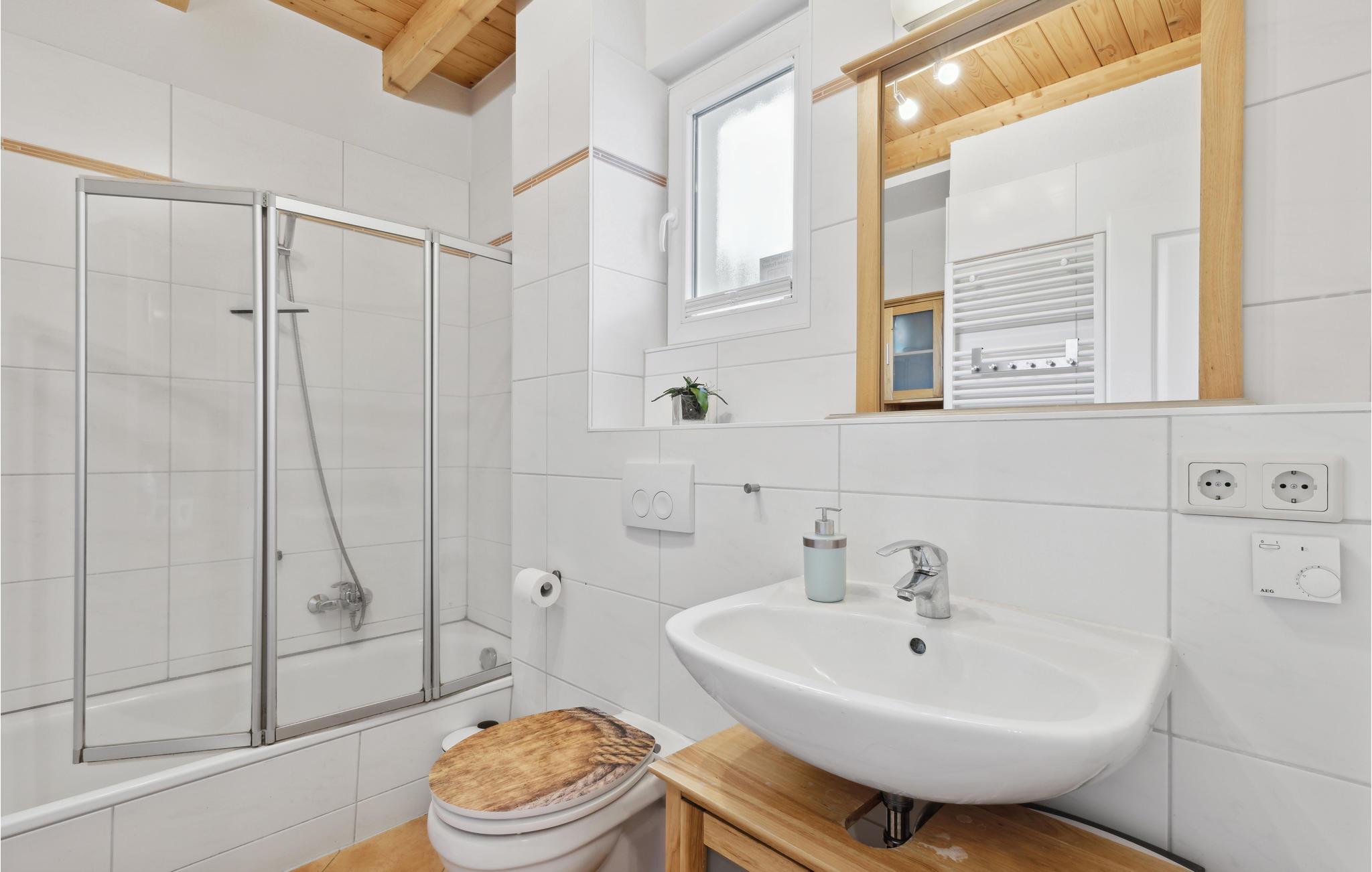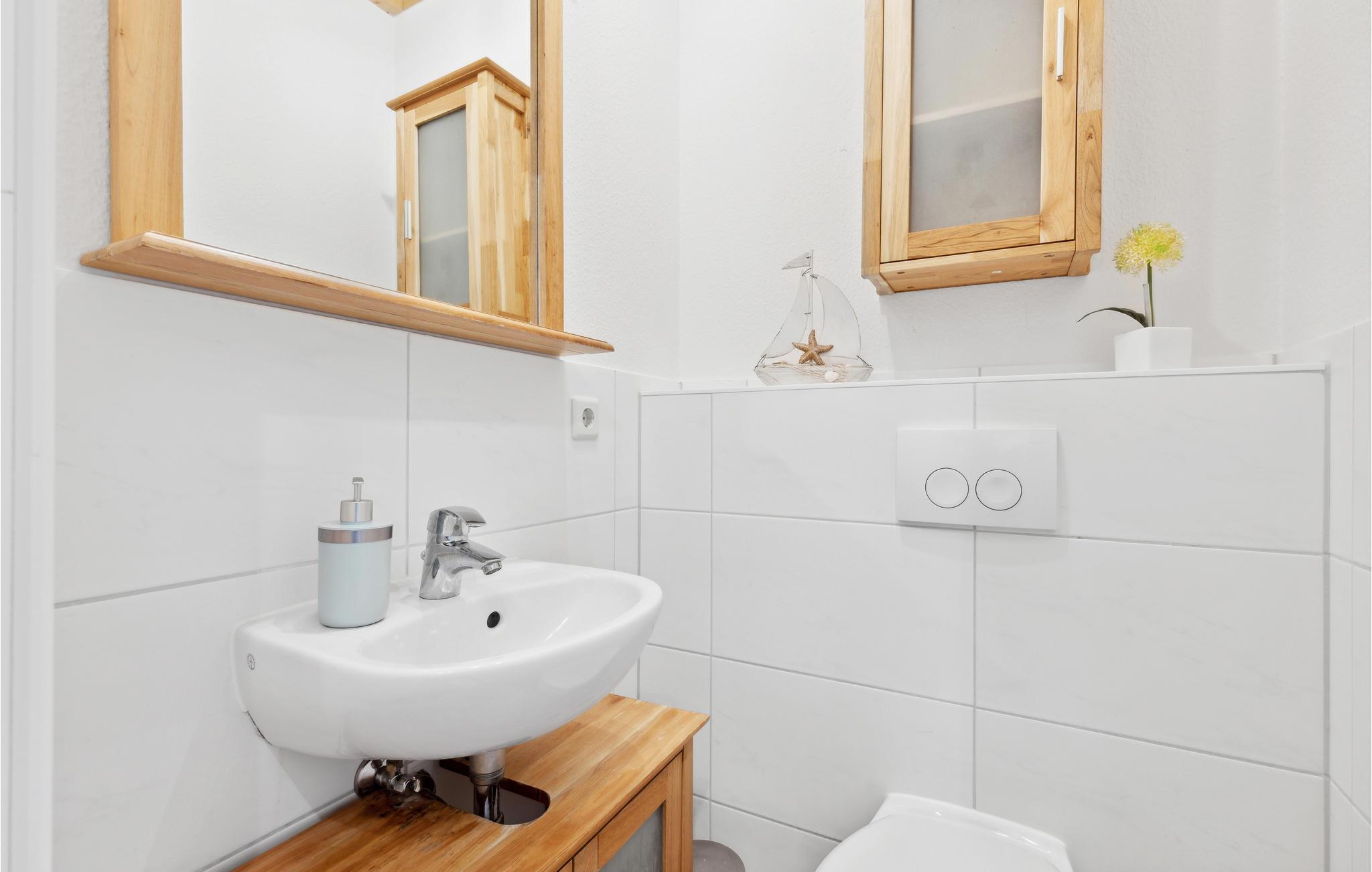 Vom Wohn/Essbereich (mit offener Küche und Kaminofen) erreicht man über eine Treppe die breite Galerie mit einem zweiten, großzügigen Wohnbereich (22 m²). Von hier aus können Sie eine Panorama-Aussicht über die Ostsee genießen. Im Erdgeschoss befinden sich zwei Schlafzimmer und zwei Bäder. Auf der Galerie befindet sich ein zusätzliches Doppelbett. Das Haus verfügt zudem über einen Balkon sowie eine große Terrasse mit Gartenmöbeln und eigenem Grill.