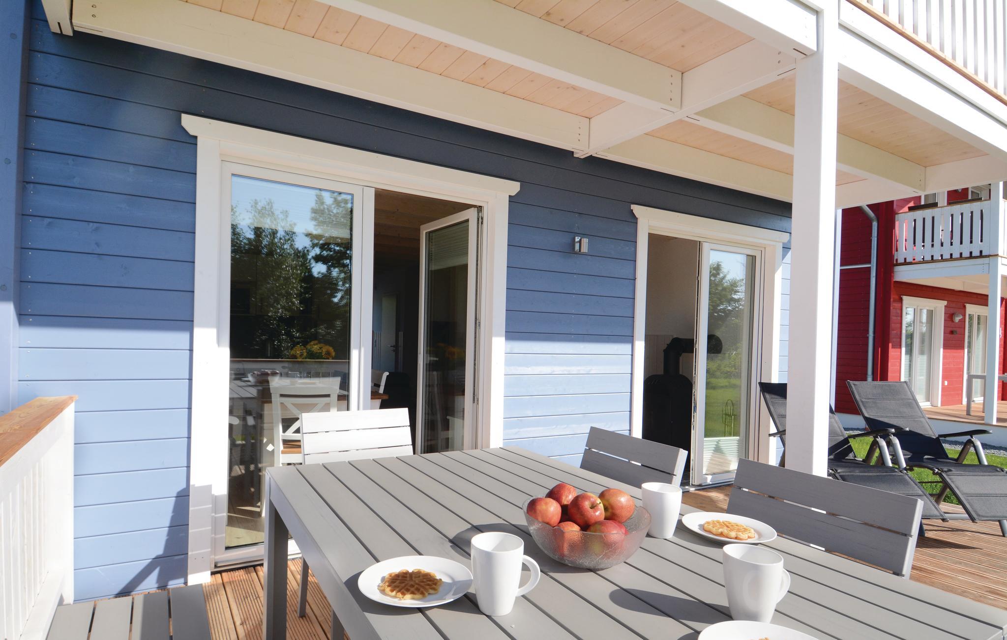 Direkt an der Ostsee liegt dieses traumhafte Ferienhaus im Ferienhausdorf Süssauer Strand über zwei Etagen. Die Sonne und die schöne Ostseeluft können Sie gleich doppelt genießen: vom gemütlichen Wohnbereich aus gelangen Sie auf die hübsche Veranda im Grünen. Im ersten Stock haben Sie gleich von zwei der drei Schlafzimmer aus direkten Zutritt zum Balkon und können dort direkt nach dem Aufstehen den Blick über die Wiesen bis hin zur Ostsee schweifen lassen.