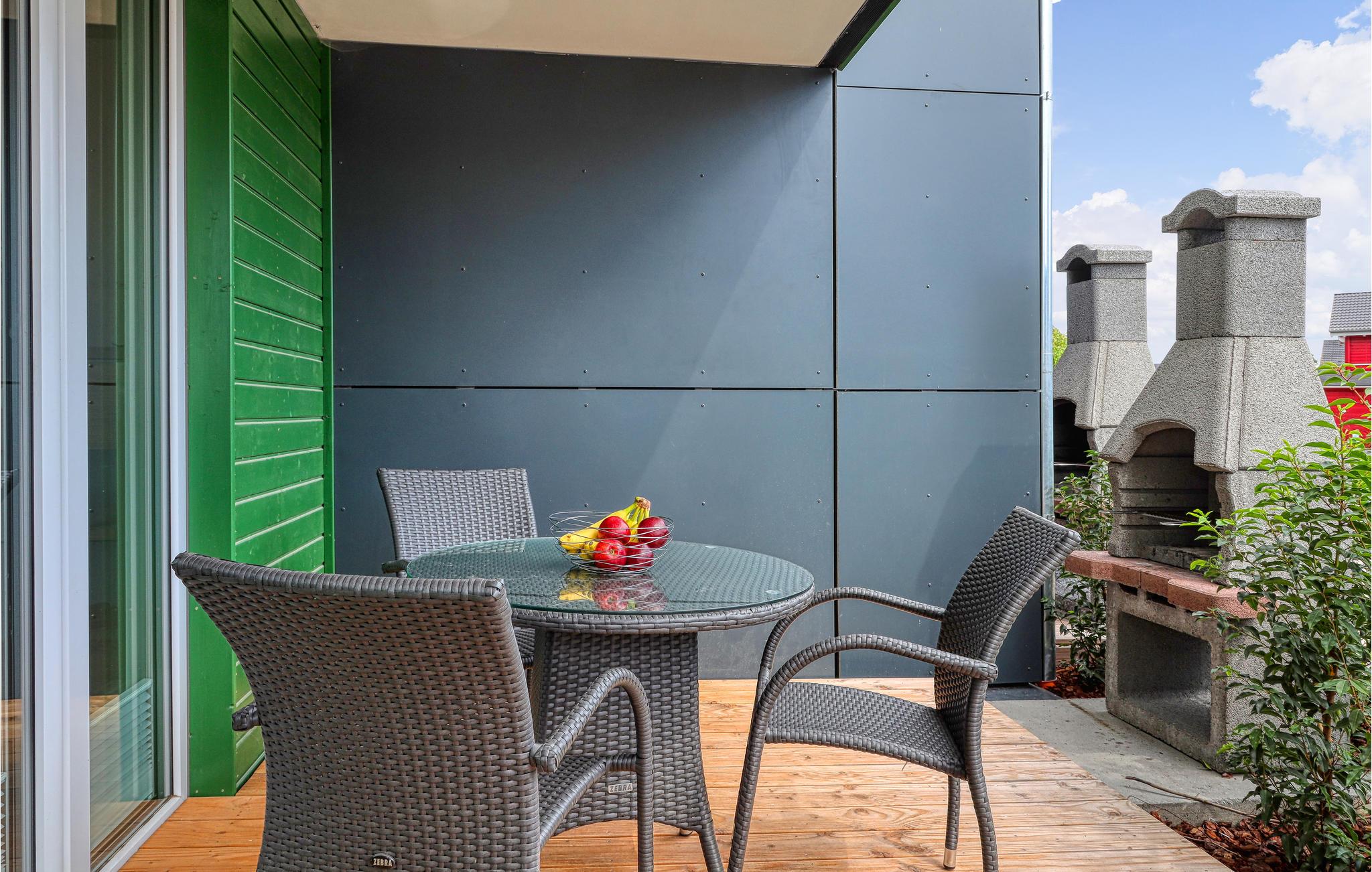 Ihr Haus erstreckt sich dort über drei Etagen. Im Erdgeschoss befindet sich ein offener, gemütlicher Wohnbereich mit angrenzender Terrasse, eine moderne Einbauküche sowie ein Gäste-WC. Im ersten Stock lädt ein geräumiger Balkon zum Verweilen ein. Zudem befinden sich auf dieser Ebene drei Schlafzimmer und ein Duschbad. Ein viertes Schlafzimmer mit Galerie und großem Bad mit Sauna rundet das Wohnerlebnis im zweiten Stock ab. Hier können Sie die schöne Ostseeluft und einen tollen Blick auf die Ostsee von einem weiteren Balkon genießen. Hochwertige Möbel und eine gelunge Raumaufteilung machen dieses Ferienhaus zu einem traumhaften Urlaubsdomizil in ruhiger Umgebung.