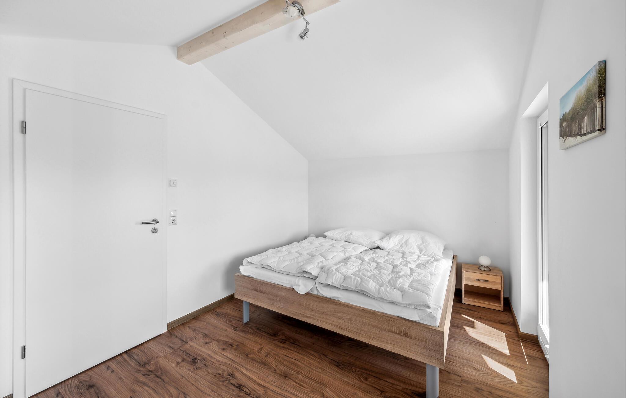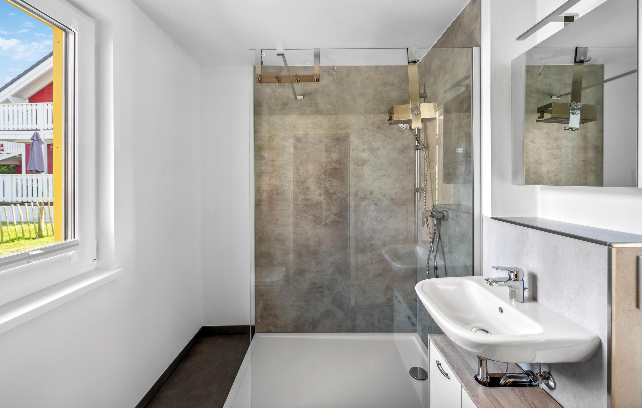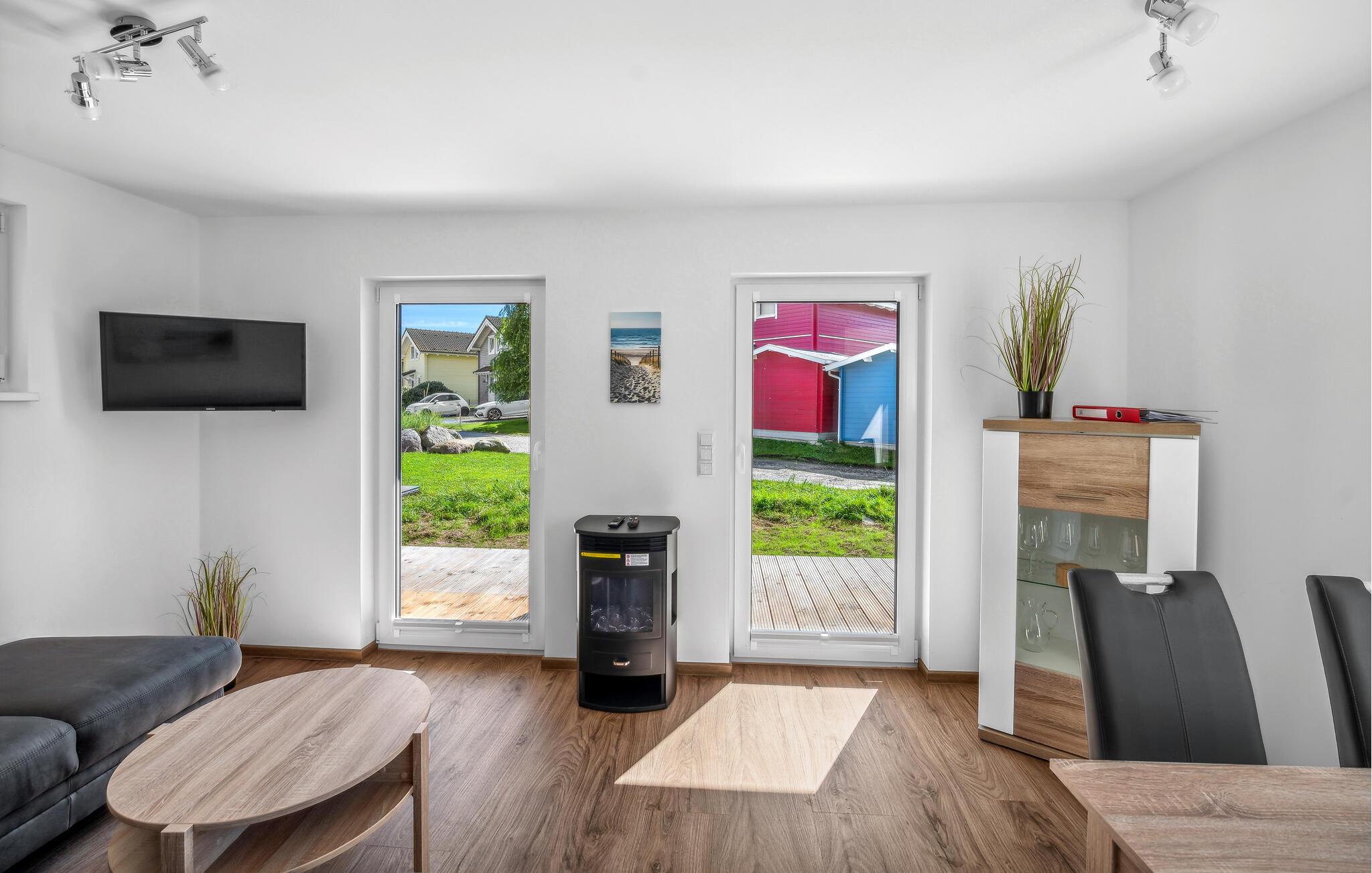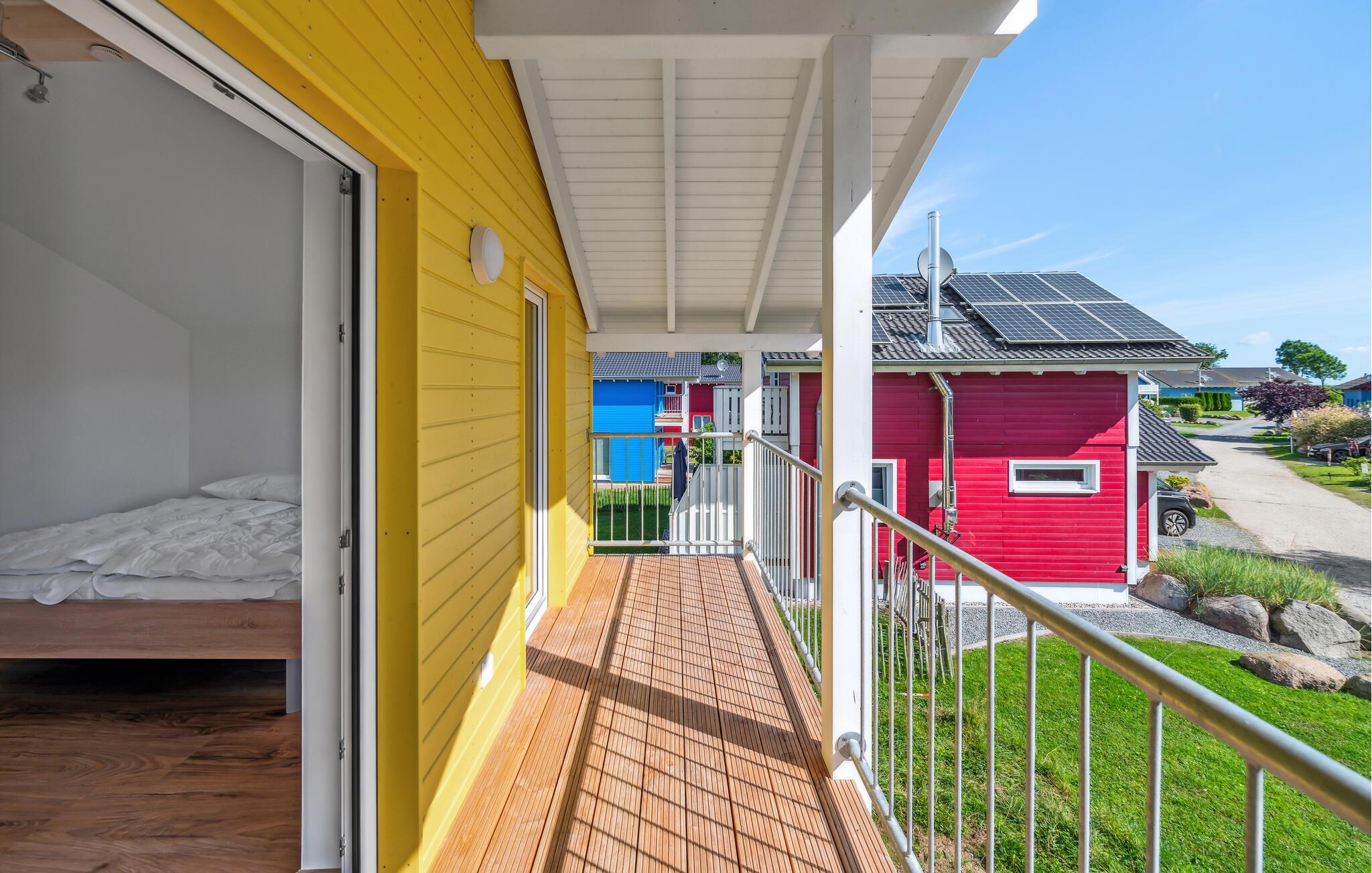 Ihr Haus erstreckt sich dort über zwei Etagen. Im Erdgeschoss befindet sich ein offener, gemütlicher Wohnbereich mit angrenzender Terrasse, eine moderne Einbauküche sowie ein Duschbad mit einer Sauna. Im ersten Stock lädt ein geräumiger Balkon zum Verweilen ein. Zudem befinden sich auf dieser Ebene zwei Schlafzimmer und ein Badezimmer. Hier können Sie die schöne Ostseeluft und einen tollen Blick auf das Feriendorf von dem Balkon genießen. Hochwertige Möbel und eine gelunge Raumaufteilung machen dieses Ferienhaus zu einem traumhaften Urlaubsdomizil in ruhiger Umgebung.