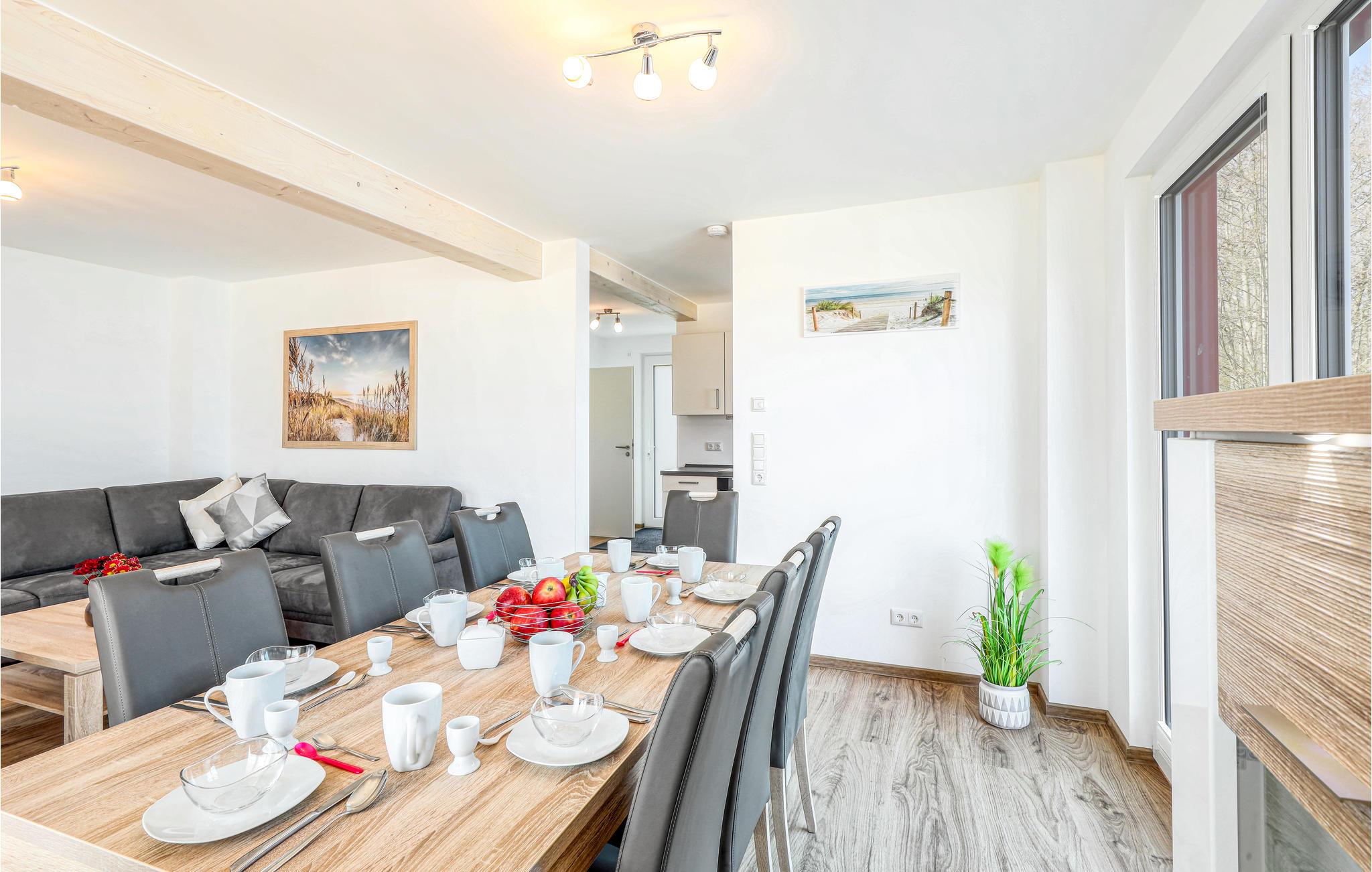 Ihr Haus erstreckt sich dort über drei Etagen. Im Erdgeschoss befindet sich ein offener, gemütlicher Wohnbereich mit angrenzender Terrasse, eine moderne Einbauküche sowie ein Gäste-WC. Im ersten Stock lädt ein geräumiger Balkon zum Verweilen ein. Zudem befinden sich auf dieser Ebene drei Schlafzimmer und ein Duschbad. Ein viertes Schlafzimmer mit Galerie und großem Bad mit Sauna rundet das Wohnerlebnis im zweiten Stock ab. Hier können Sie die schöne Ostseeluft und einen tollen Blick auf die Ostsee von einem weiteren Balkon genießen. Hochwertige Möbel und eine gelunge Raumaufteilung machen dieses Ferienhaus zu einem traumhaften Urlaubsdomizil in ruhiger Umgebung.