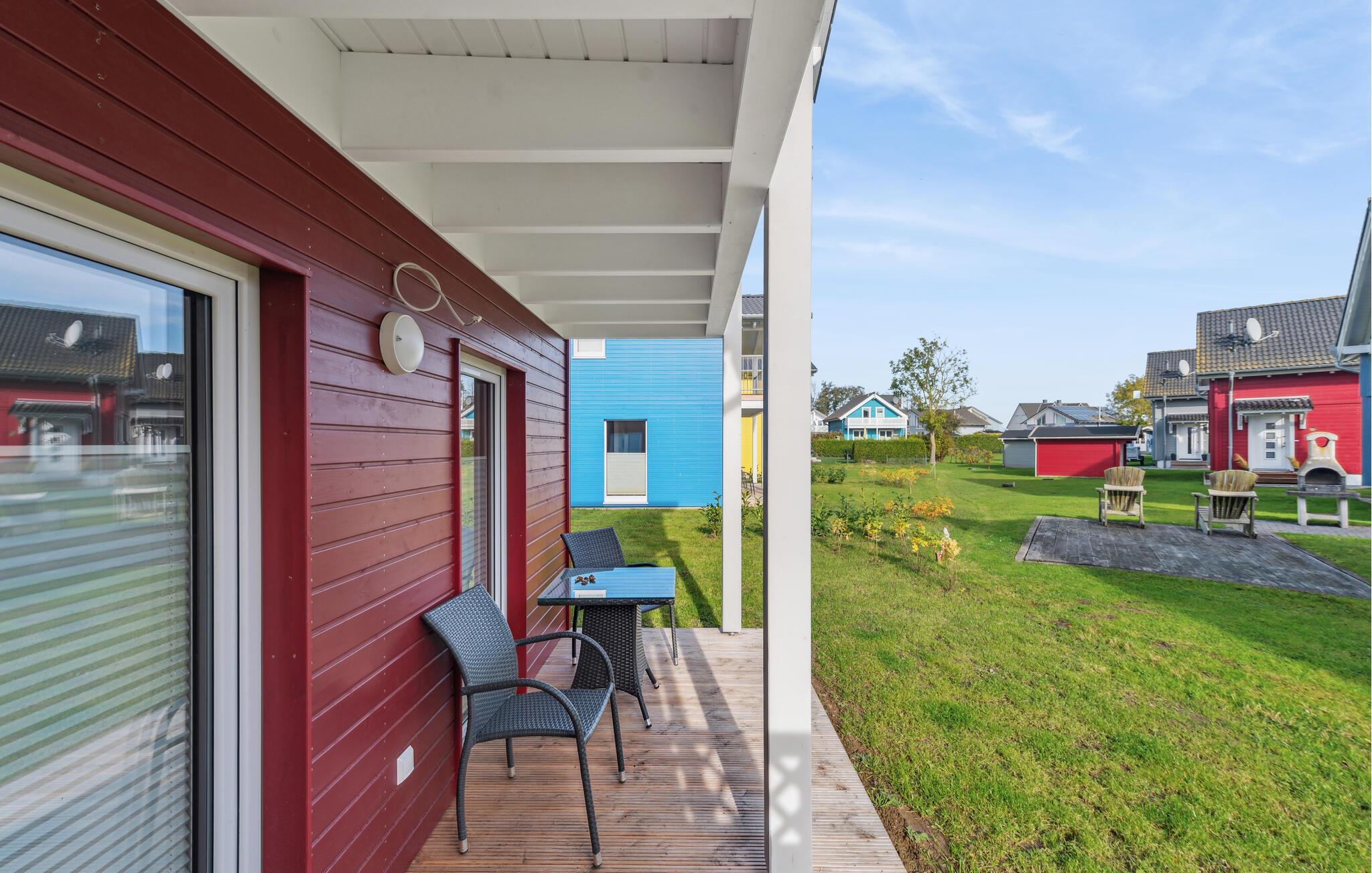 Ihr Haus erstreckt sich dort über zwei Etagen. Im Erdgeschoss befindet sich ein offener, gemütlicher Wohnbereich mit angrenzender Terrasse, eine moderne Einbauküche sowie ein Duschbad mit einer Sauna. Im ersten Stock lädt ein geräumiger Balkon zum Verweilen ein. Zudem befinden sich auf dieser Ebene zwei Schlafzimmer und ein Badezimmer. Hier können Sie die schöne Ostseeluft und einen tollen Blick auf das Feriendorf von dem Balkon genießen. Hochwertige Möbel und eine gelunge Raumaufteilung machen dieses Ferienhaus zu einem traumhaften Urlaubsdomizil in ruhiger Umgebung.