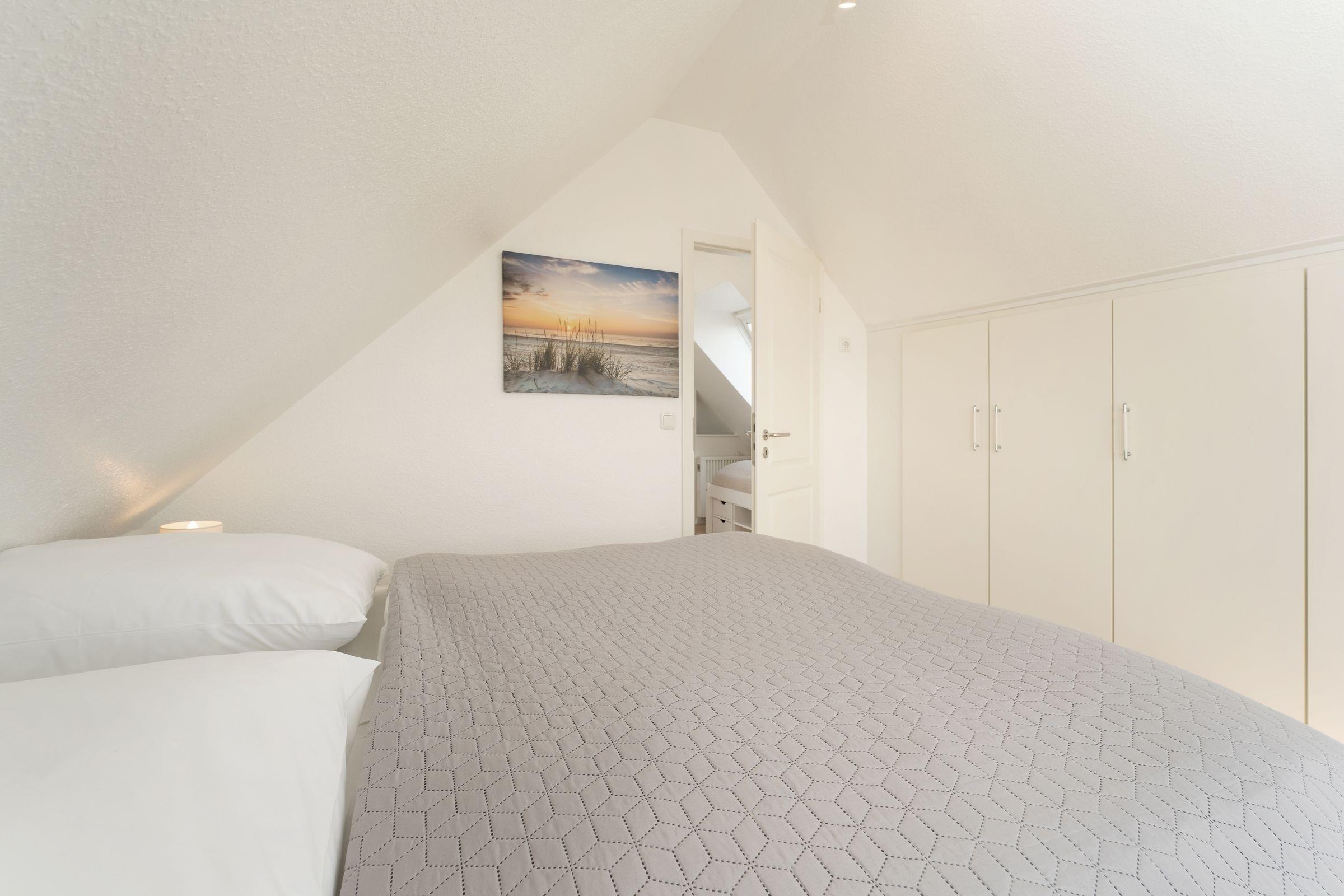 Schlafzimmer 1 (OG): 1 Doppelbett (2x 90x200 cm), TV, Kleiderschrank, Verdunkelung: Außenjalousien, kein Platz für Babybett vorhanden