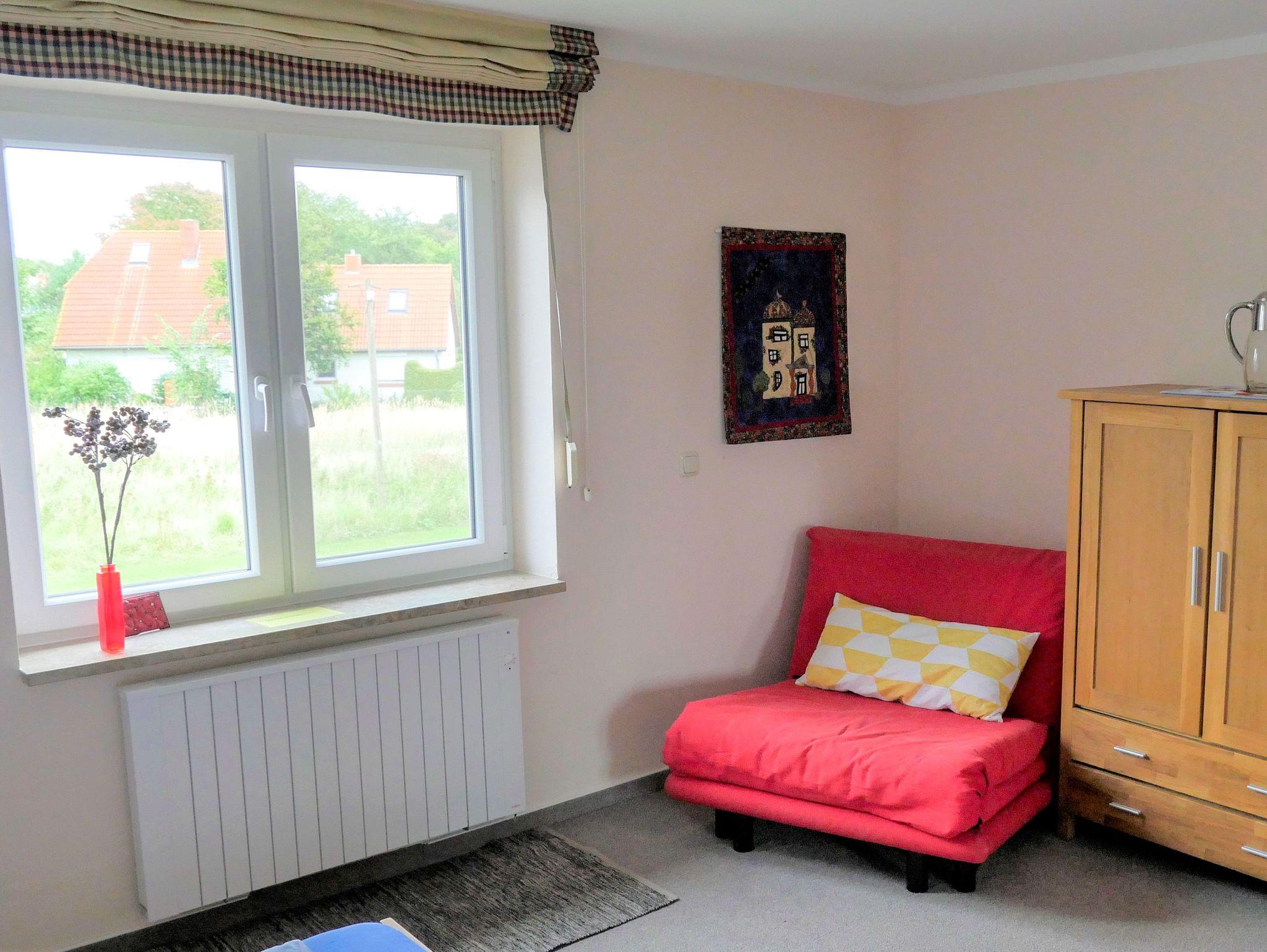 Das Haus Mantuja in Saal bietet eine großzügige Ferienwohnung mit traumhaftem Boddenblick und großem Garten für erholsame Urlaubstage.