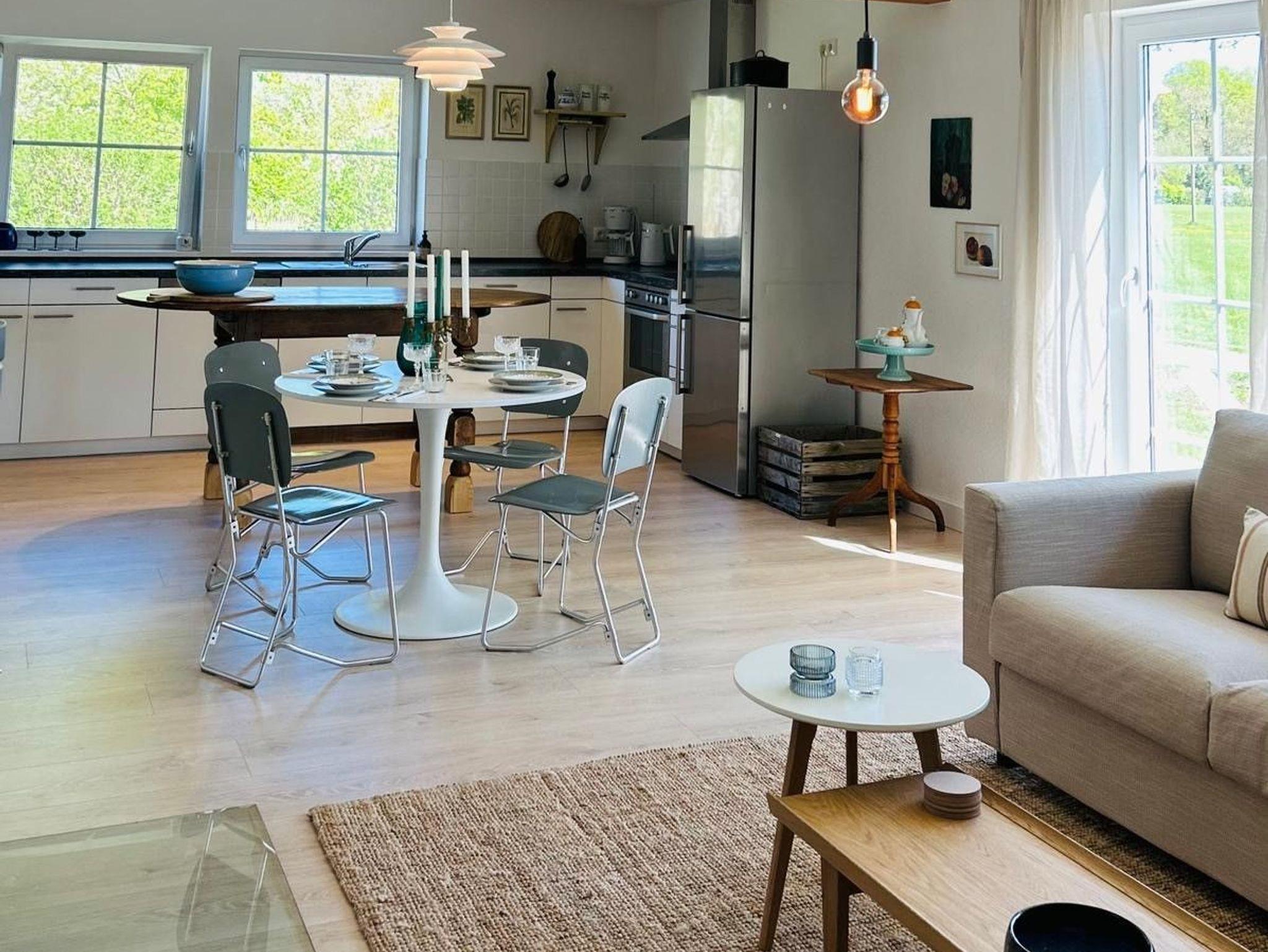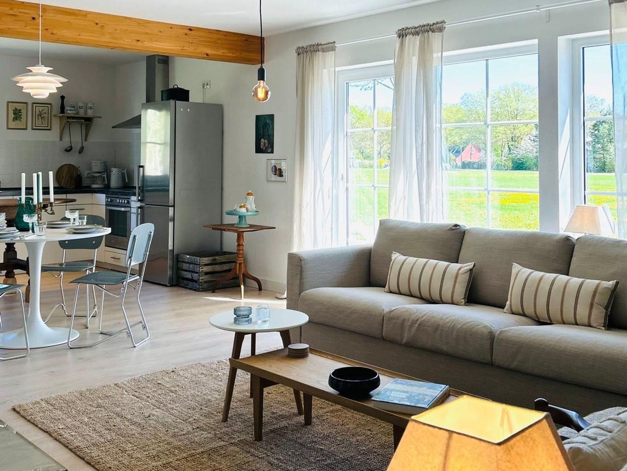Das Ferienhaus verfügt über alle Annehmlichkeiten, die es dazu braucht. Zwei Schlafzimmer für insgesamt vier Personen sowie ein großzügiger Wohn- und Essbereich mit einer vollausgestatteten Küche stehen euch zur Verfügung. Kuschelig wird es am Kaminofen und ordentlich geschwitzt werden kann in der Sauna, die sich direkt im Haus befindet. Der weitläufige Garten und die Terrasse laden zum Entspannen und Verweilen ein. Freut euch auf ein unbeschwertes Lebensgefühl auf dem Land, unweit von der Küste und tollen Attraktionen in der Region entfernt.