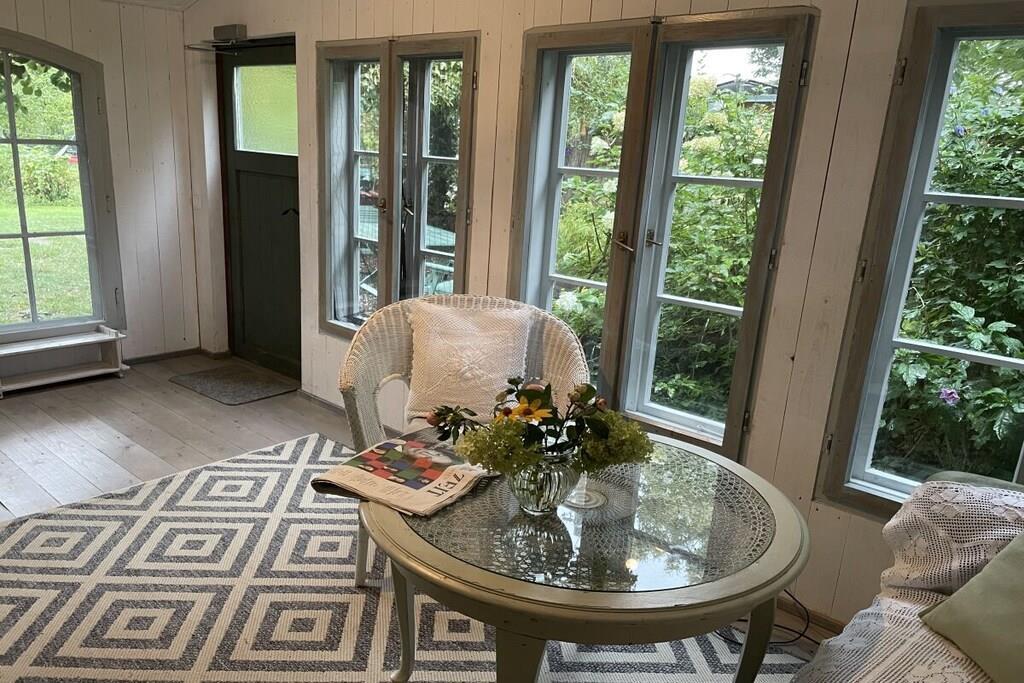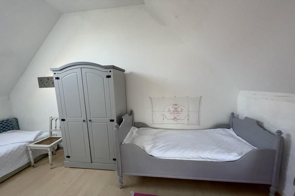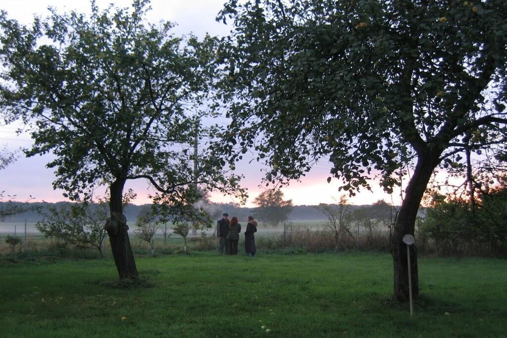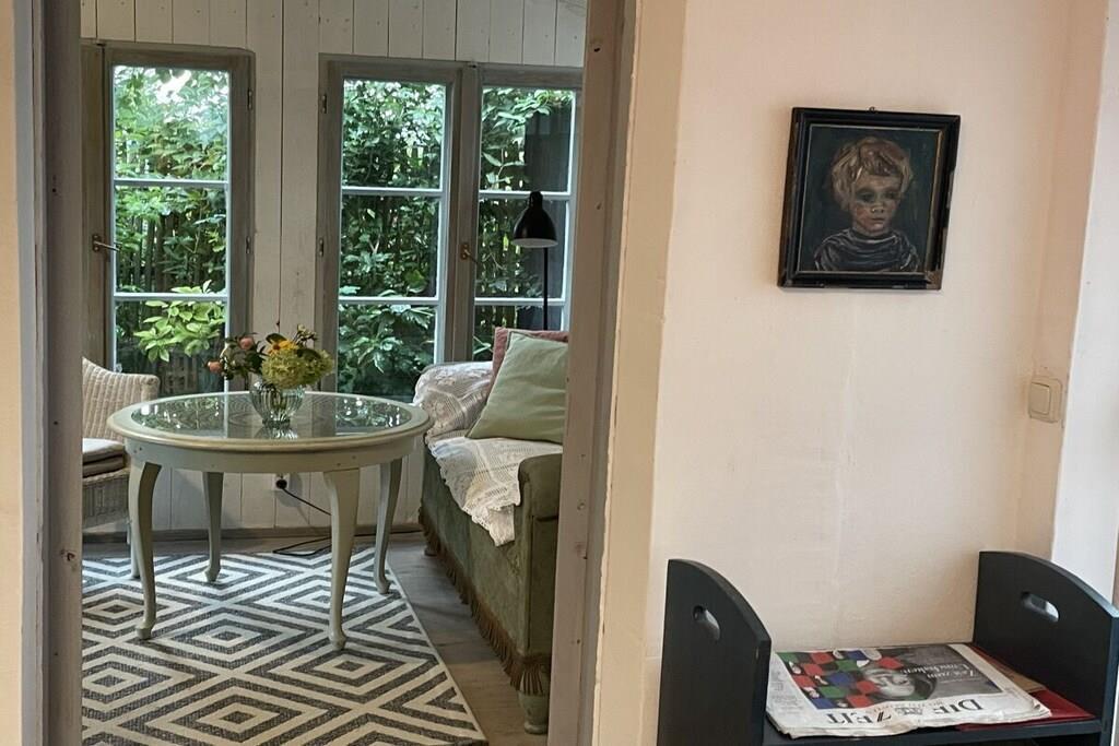 Das Haus liegt auf dem Land - umringt von Gärten, Apfelbäumen und Feldern Der obere Schlaf- und Wohnraum ist vom Kinderzimmer getrennt . Hier kann man mit Oberlicht und großen Fenstern ausgestattet, einen schönen Blick über die weite Landschaft erleben.Die Veranda wird vielseitig genutzt. Unter der alten Linde ein Essplatz für Licht und Schatten. Liegen und Hängematte im Garten..