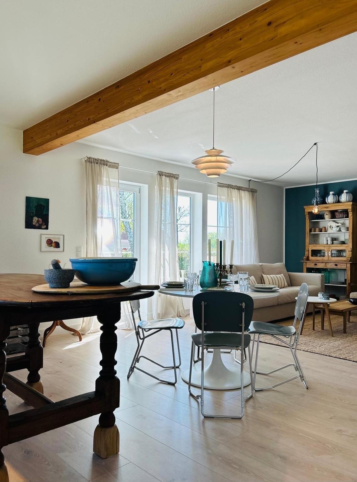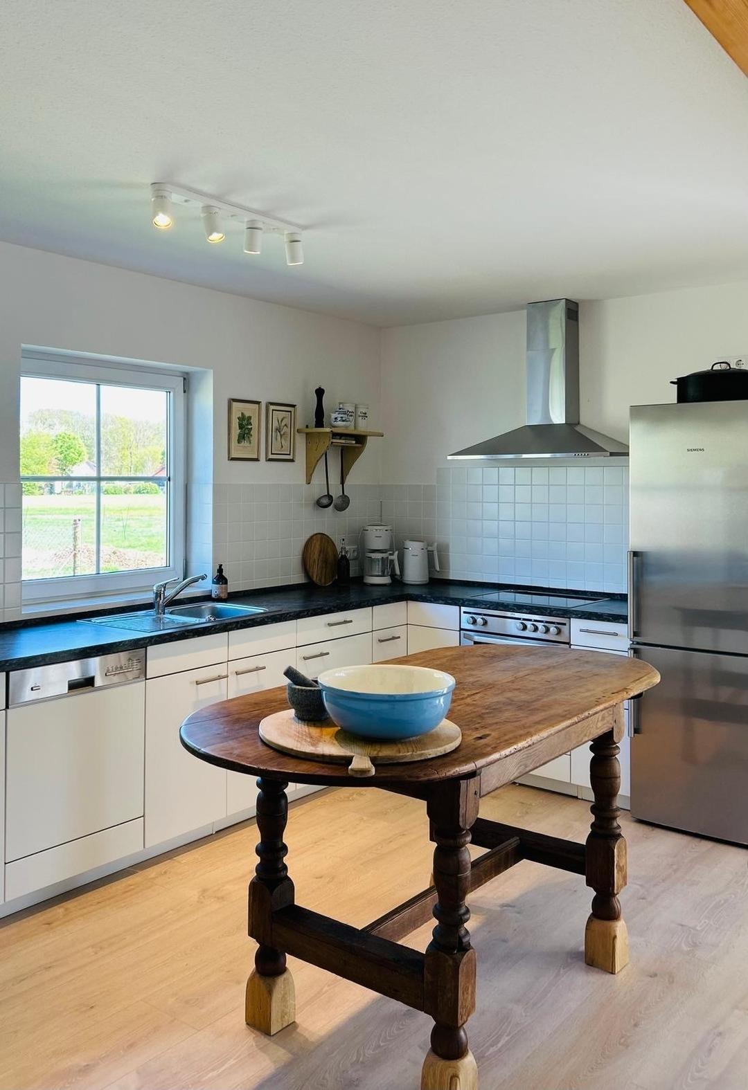 Das Ferienhaus verfügt über alle Annehmlichkeiten, die es dazu braucht. Zwei Schlafzimmer für insgesamt vier Personen sowie ein großzügiger Wohn- und Essbereich mit einer vollausgestatteten Küche stehen euch zur Verfügung. Kuschelig wird es am Kaminofen und ordentlich geschwitzt werden kann in der Sauna, die sich direkt im Haus befindet. Der weitläufige Garten und die Terrasse laden zum Entspannen und Verweilen ein. Freut euch auf ein unbeschwertes Lebensgefühl auf dem Land, unweit von der Küste und tollen Attraktionen in der Region entfernt.