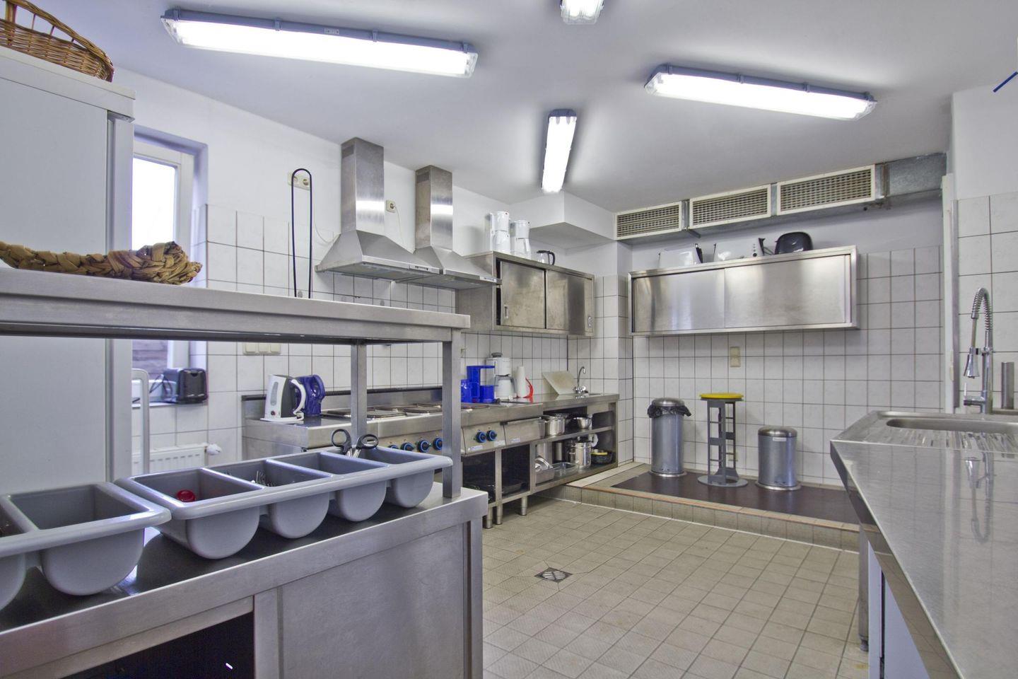 KÜCHE // Gastroküche, Herd, Kühlschrank mit Gefrierfach, Backofen, Toaster, Wasserkocher, Kaffeemaschine, reichlich Küchenutensilien, Spülmaschine ++